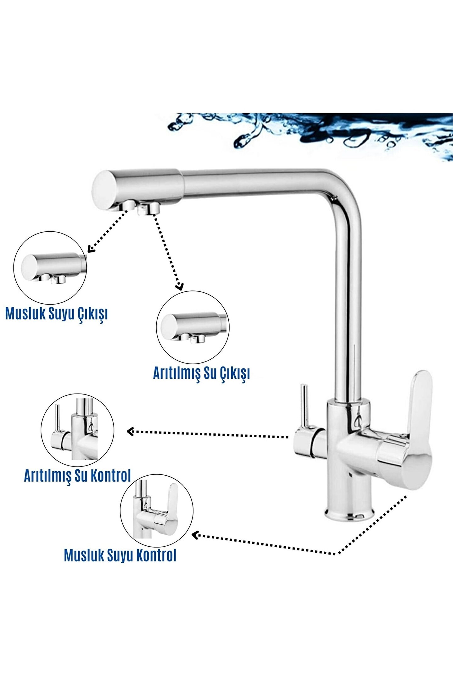 Evora 3 Yollu Musluk Su Arıtma Musluğu Üç Yollu Çoklu Musluk