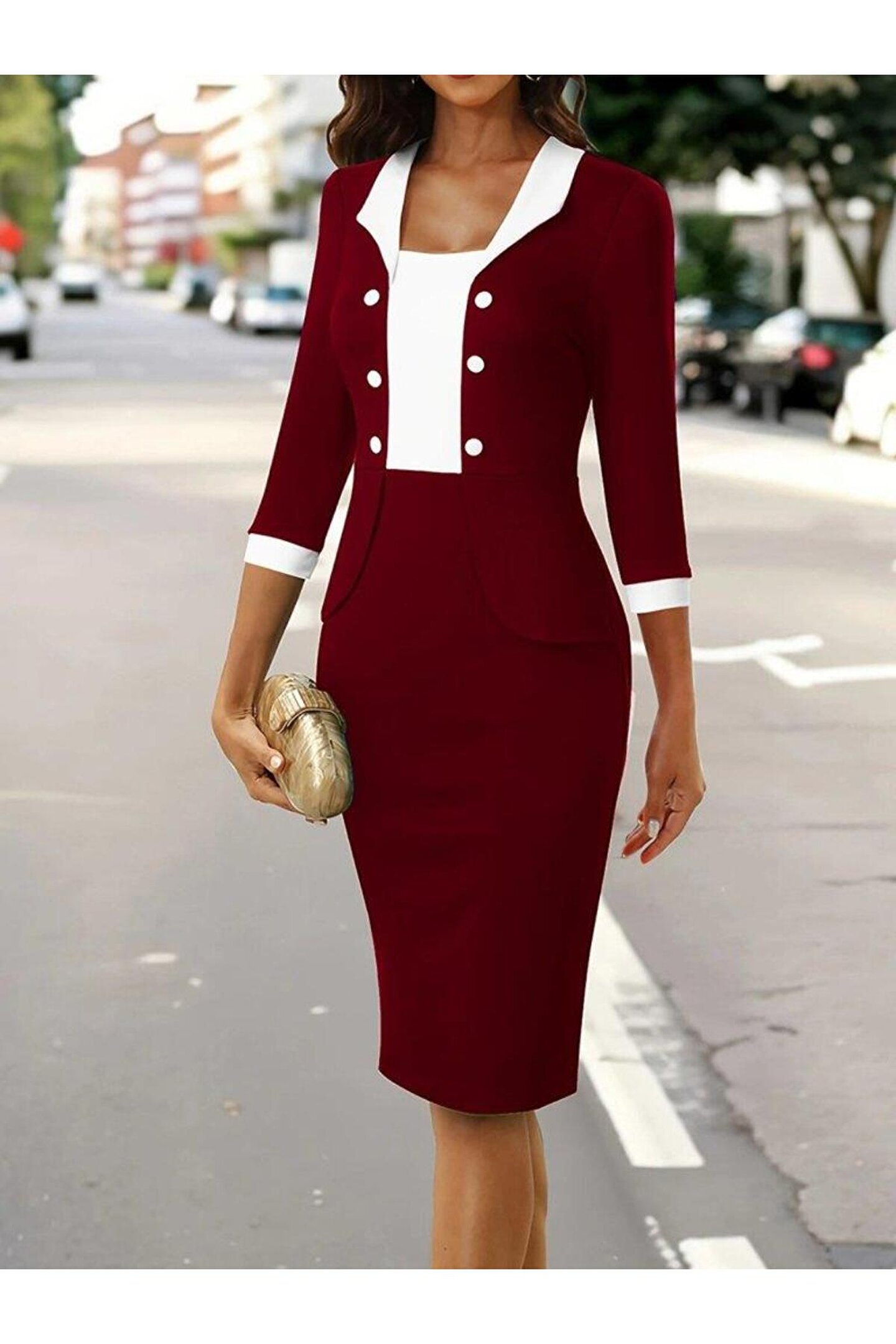Kadın Truvakar Kol çift Renkli Düğmeli Kısa Ithal Krep Elbise