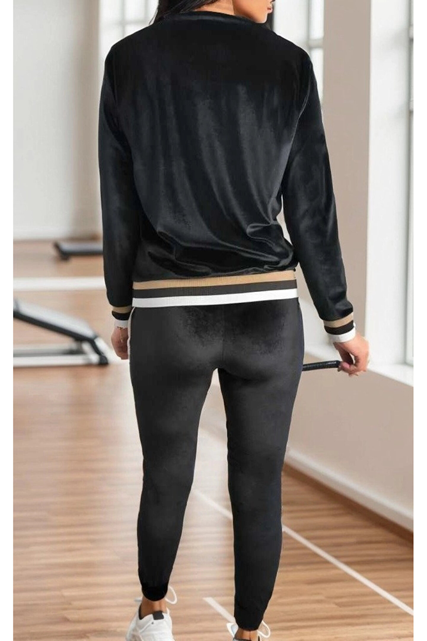 Kadın Uzun Kollu V Yaka Yakası Ve Kol Ağzı şerit Detay Kadife Takım