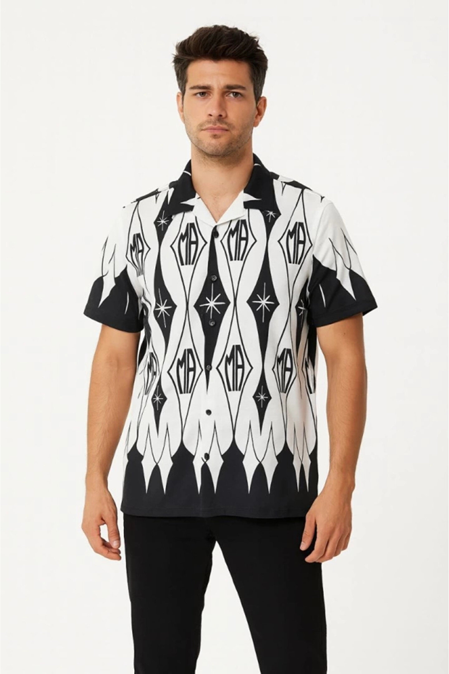 MDB Erkek İki İplik Kumaş Dijital Baskılı Gömlek iyah