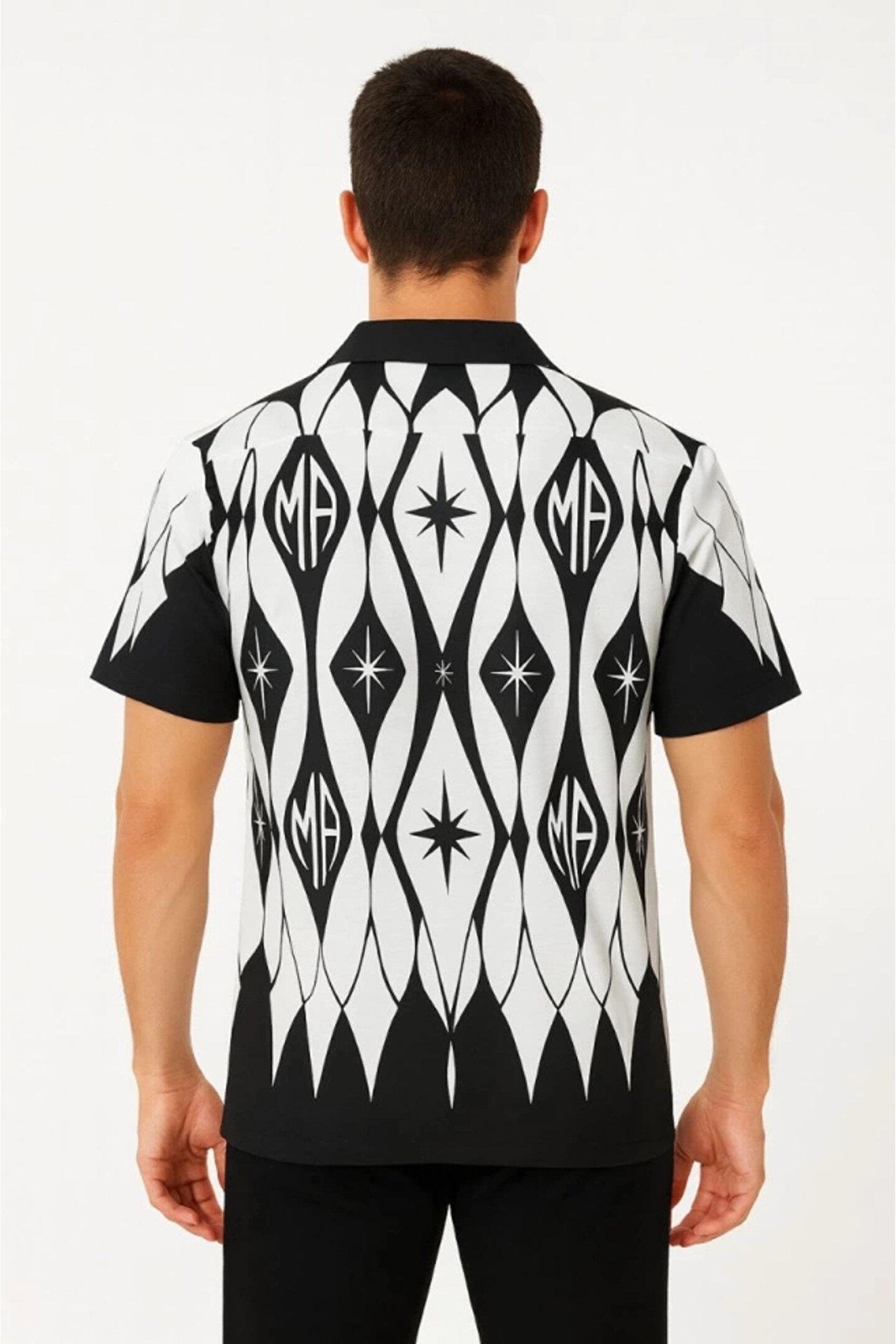 EyesOf MDB Erkek İki İplik Kumaş Dijital Baskılı Gömlek iyah