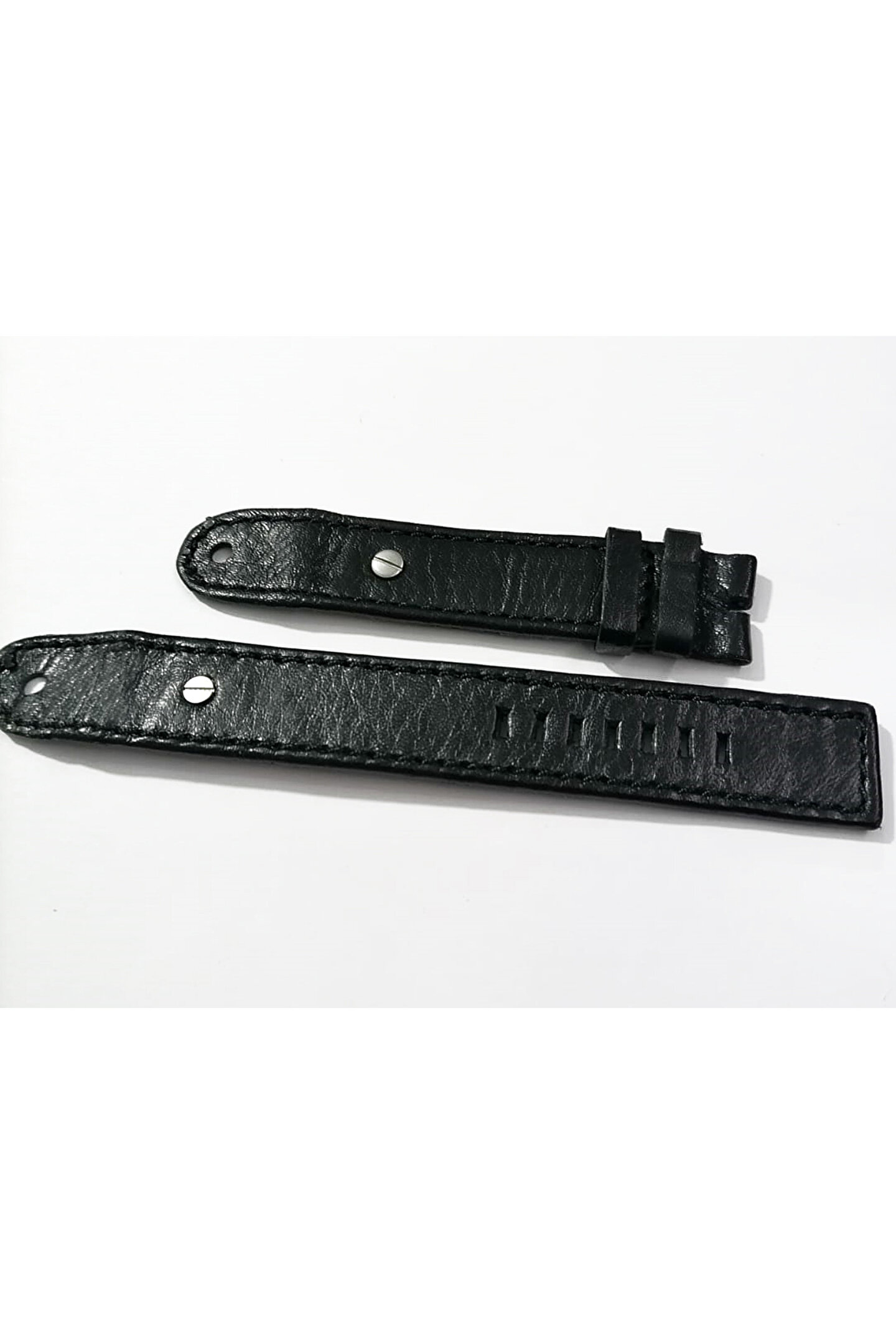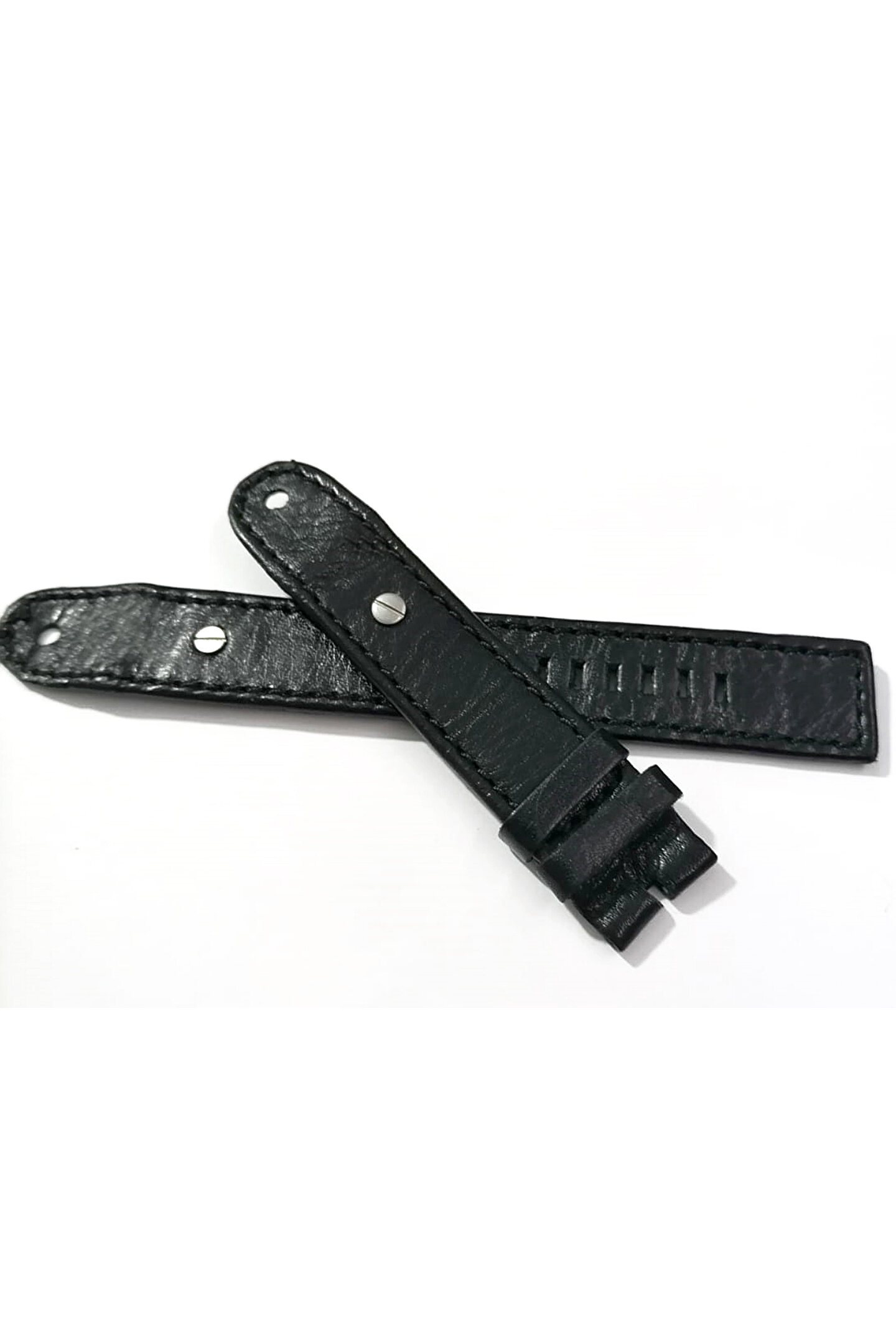 Dizel Uyumlu vidalı Saat Kordonu Hakiki Deri 20 mm Parlak siyah
