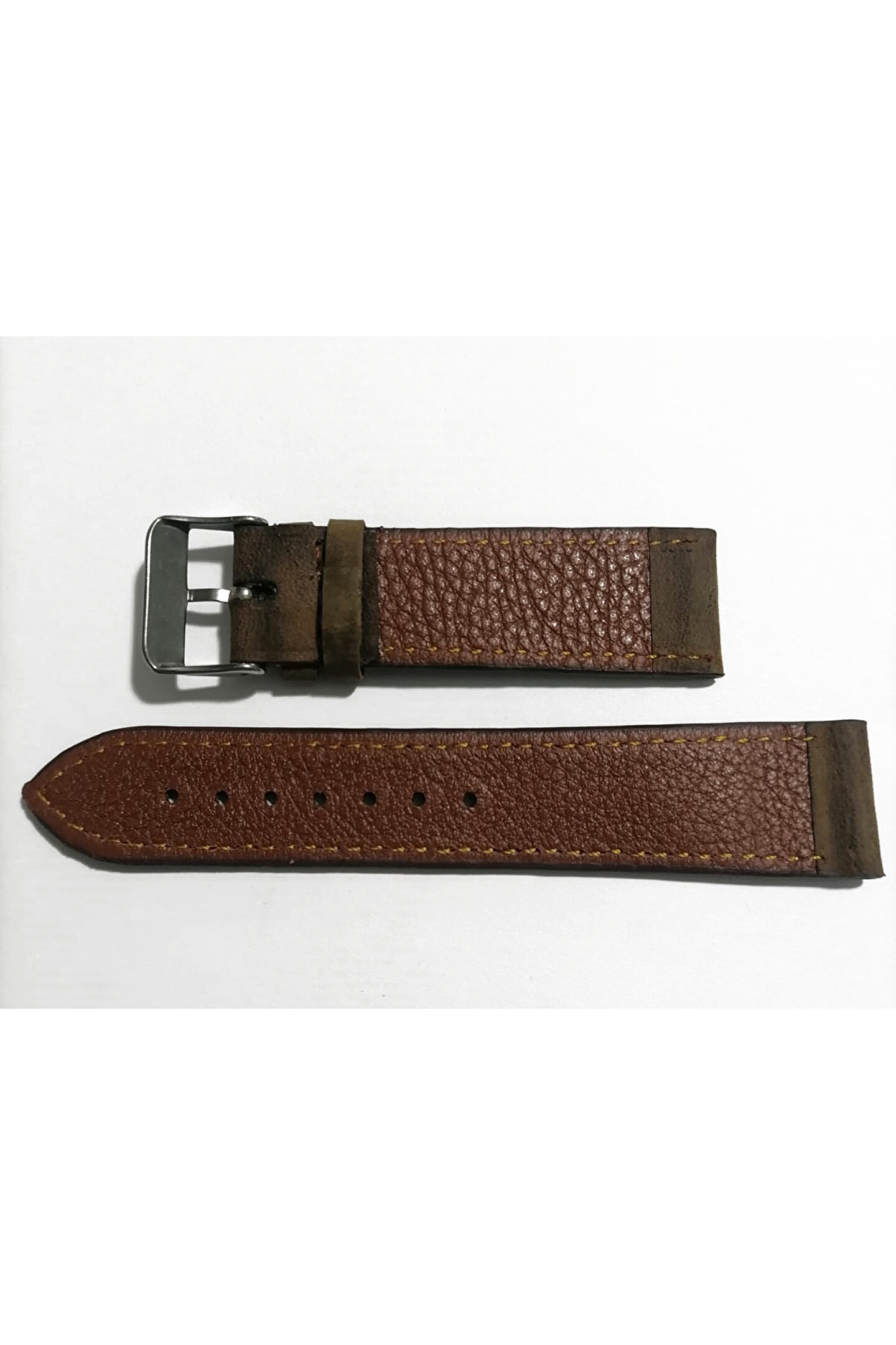 Fossil &Her Saate Uyumlu Kahverengi Dikişli 20 mm grizi deri
