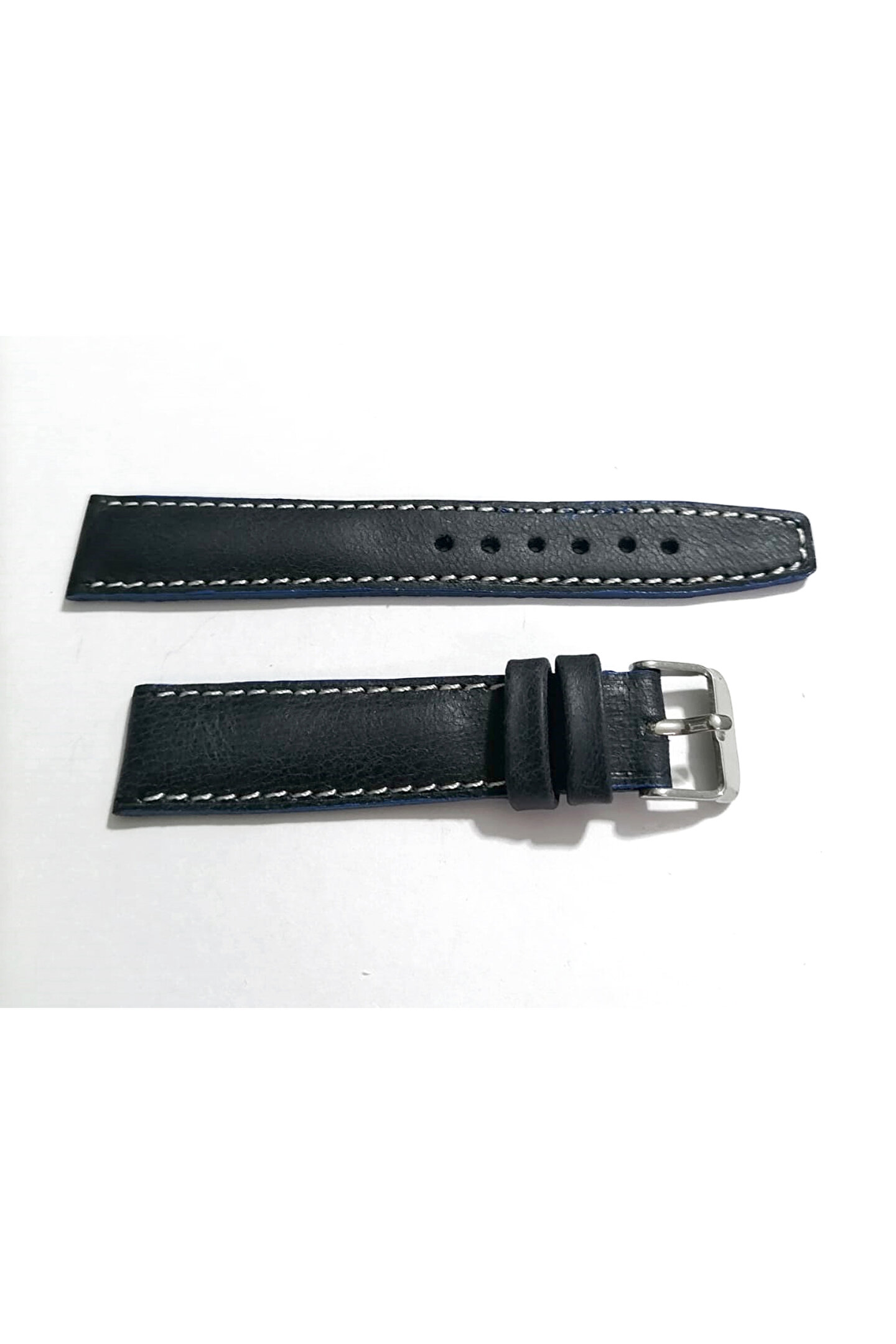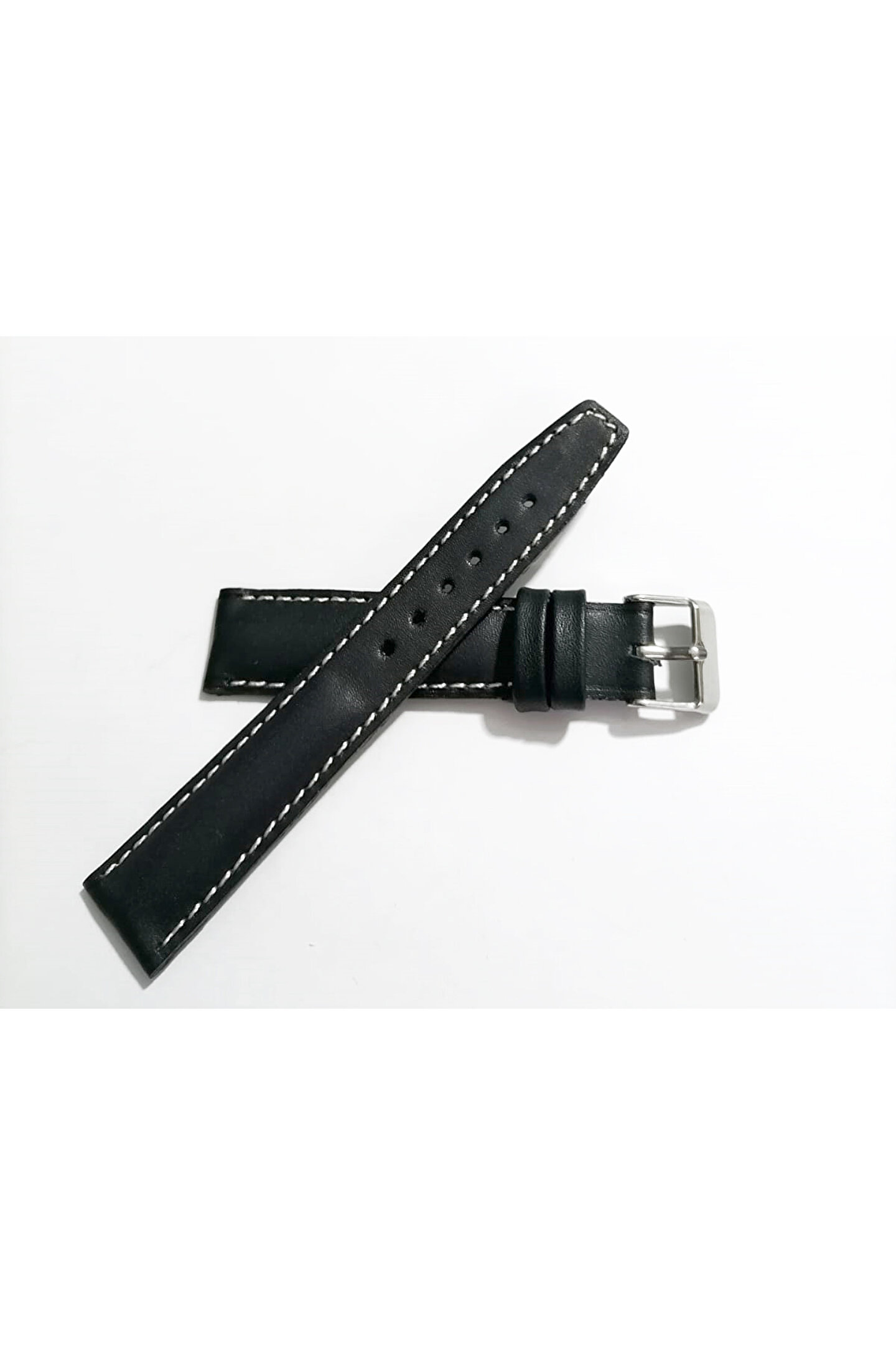 Fado& Her Saate Uyumlu Hakiki Siyah Deri Saat Kordonu 20 mm (304) beyaz dikişli