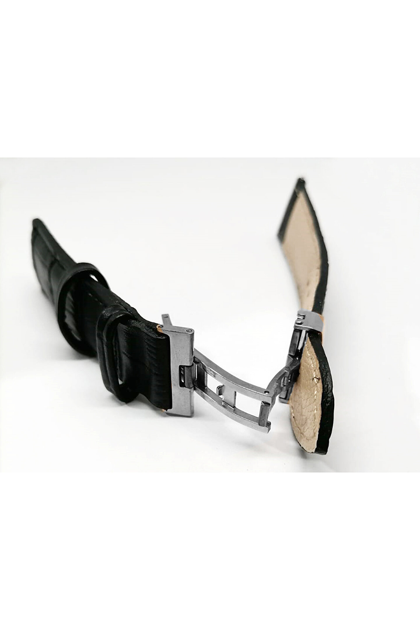 Şık tasarımıyla dikkat çeken bu saat tokası, her tür saatinize kolayca uyum sağlayacak şekilde tasarlanmıştır.; 20mm genişliğindeki bu tokanın siyah rengi, hem klasik hem de modern saat tasarımlarına mükemmel uyum sağlar.; Çelik kasaya sahip olan bu saat tokası, dayanıklı yapısıyla uzun süreli kullanım için idealdir.; Quartz mekanizması sayesinde zamanı hassas bir şekilde takip etmenizi sağlayan bu saat tokası, günlük kullanım için uygundur.; Deri kordon materyali ile konforlu bir takma deneyimi sunarken şıklığınızdan ödün vermezsiniz.;