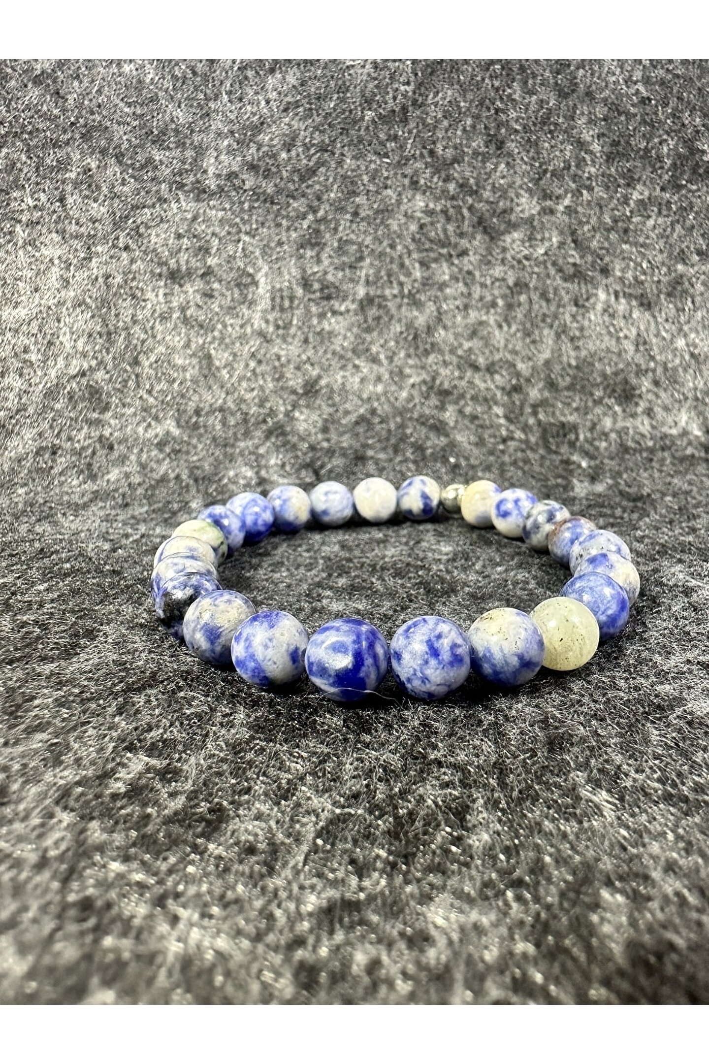 Doğal taş bileklik, her bir bileklikte bulunan benzersiz desen ve renklerle doğanın zarafetini yansıtır;; Azurit taşı, mavi ve mor tonlarıyla göz alıcı bir görünüm sunar ve şıklığınızı tamamlar;; Doğal taş kullanımı sayesinde, her bileklik eşsiz bir hikaye anlatır ve kişisel tarzınıza özgün bir dokunuş katar;; Kaliteli malzemeler kullanılarak üretilen bu bileklik, uzun süreli kullanım için idealdir ve dayanıklılığıyla ön plana çıkar;;
