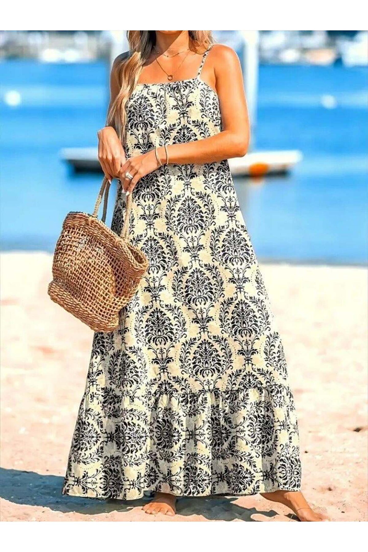 Faylora EQURİ Kadın Ip Askılı Desenli Fırfırlı Süprem Elbise