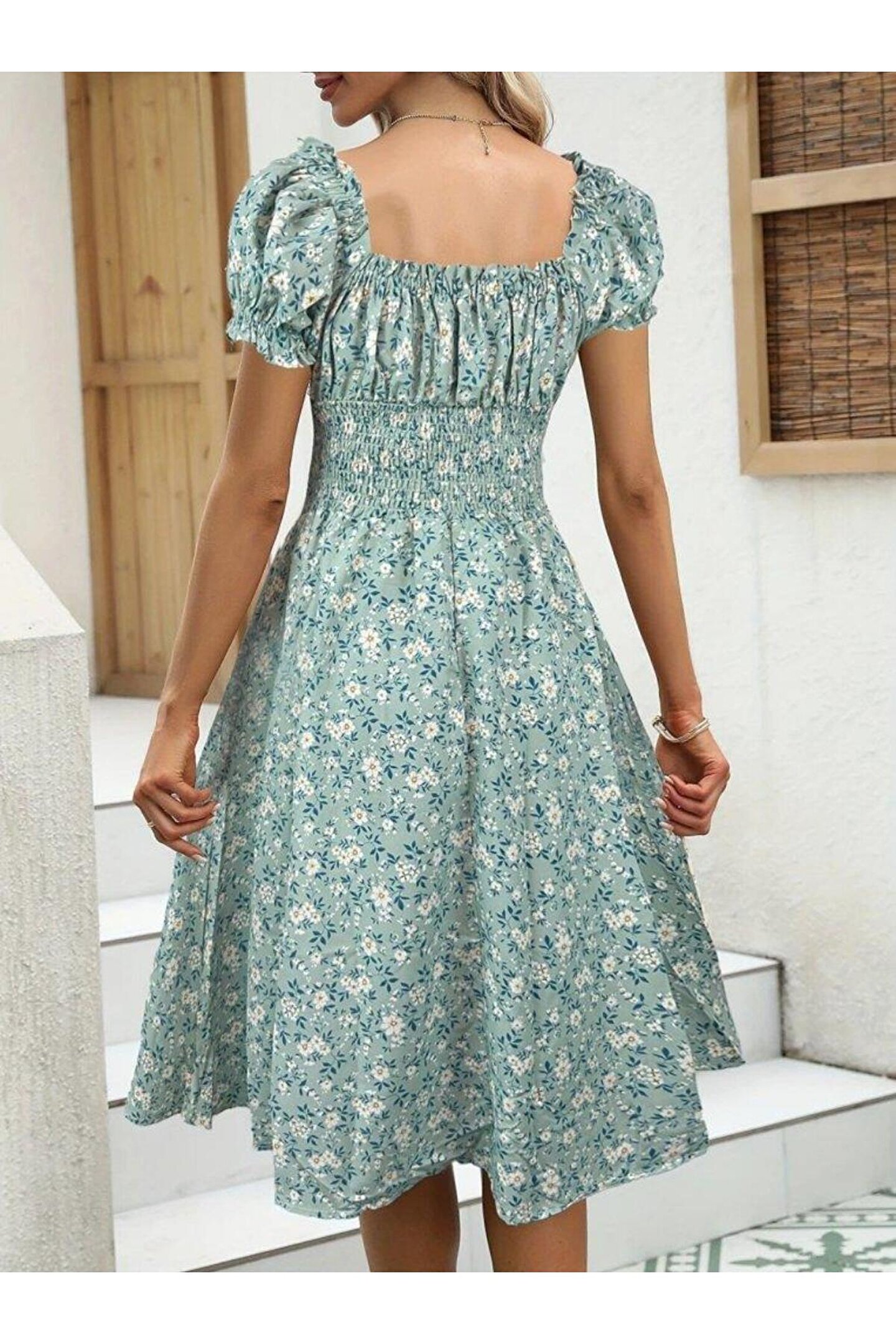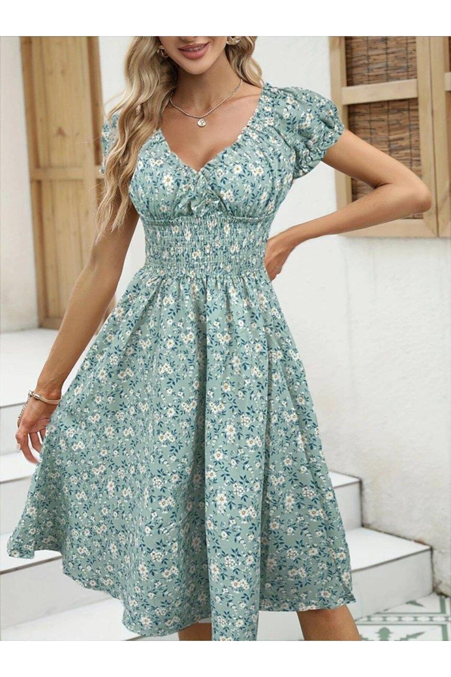 Faylora Kadın Kısa Kollu Kruvaze Yaka Lastikli Belden Gipeli çiçek Desenli Suprem Elbise