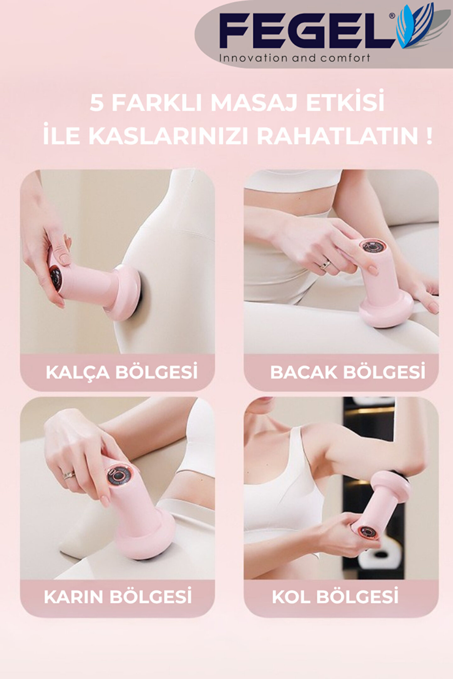 FEGEL FG-720 MasajAleti, tüm vücudunuzu rahatlatmak için özel olarak tasarlanmıştır. 6 farklıhız kademesi ve 5 farklı masaj başlığı ile kişiselleştirilmiş masaj deneyimisunar. Ergonomik tasarımı sayesinde kolay kullanım sağlarken, 15 dakika sonundaotomatik kapanma özelliği ile güvenliği ön planda tutar. Yüksek kaliteli yapısıve güçlü motoruyla pozitif bir yaşam tarzını destekler. Cihaz, başlatma ve hızkontrol düğmeleriyle kullanıcı dostu bir arayüz sunar. Temizlik için başlıklarıkolayca çıkarılabilir. Ürün 2 yıl garantilidir.