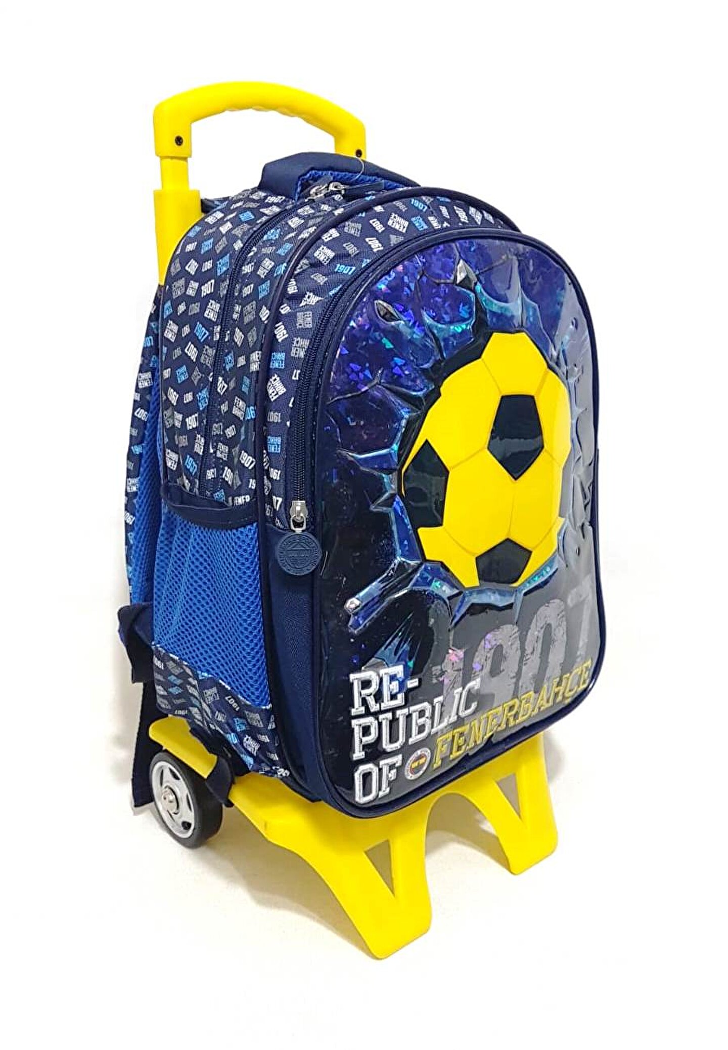 Fenerbahçe Çekçekli Okul Çantası İki bölmeli, İki Yan File CepliYumuşak Pedli Sırt YapısıÜrün Ölçüleri: 38 x 28 x 15 cmÇekçek Açıkken Maksimum Yükseklik : 85 cmÇanta Çek çekten AyrılabiliyorLisanslı Üründür