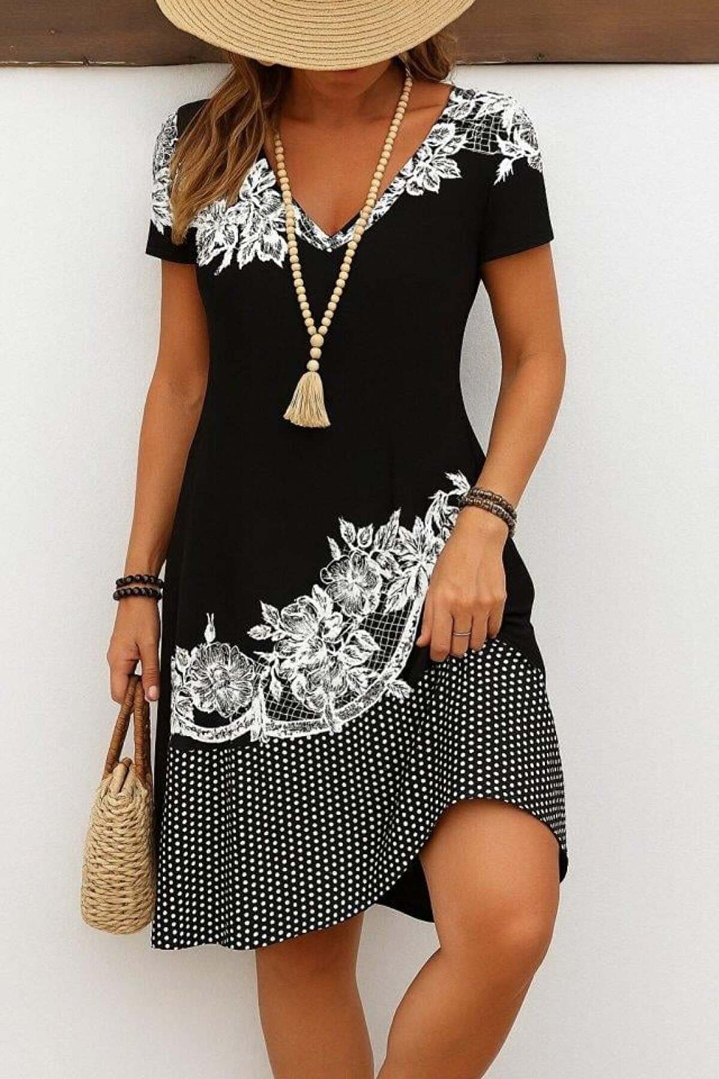 Kadın Kısa Kollu V Yakalı çiçek Baskılı Süprem Elbise