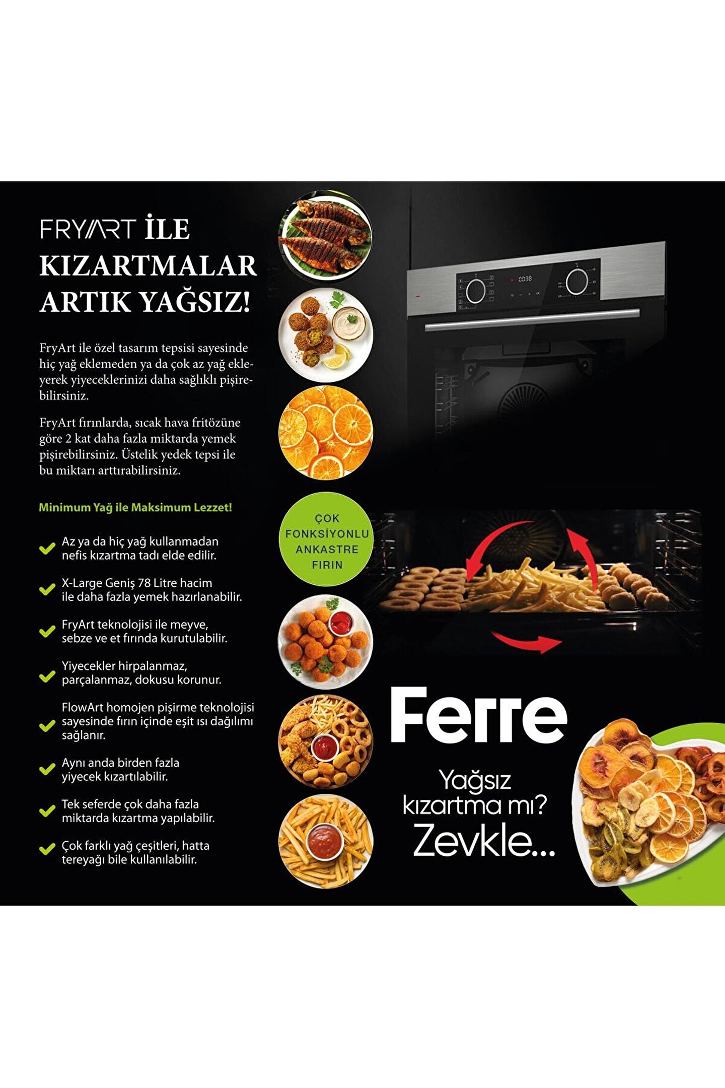 Davlumbaz Özellikleri Genişlik: 60 Cm ; Yoğun Emiş Gücü (m³/h): 500 m³/h ; Motor Özelliği: Bakır Sargılı Motor ; Kontrol Tipi: Elektronik - Dokunmatik ; Bulaşık Makinesinde Yıkanabilir Filtre: Var ; Hız Kademesi: 3 Kademeli Hız Ayarı ; Filtre Özelliği: 3 Katmanlı Alüminyum Filtre ; Minimum Ses Seviyesi: 55 dB(A) ; Bacasız Kullanım (Karbon Filtre): Opsiyonel ; Aydınlatma Tipi: 2 Adet Led Lamba ; Ocak Özellikleri Genişlik: 60 Cm ; Ocak Göz Sayısı: 4 Gözü Gazlı ; Ürün Tipi: Ankastre ; Izgara Tipi: Emaye Izgara ; Ocak Yüzeyi: Cam ; Ocak Tipi: Gazlı Ocak ; Gaz Emniyet Sistemi: Var ; Kontrol Tipi: Düğmeden Ateşleme ; Kontrol Yeri: Yan ; Gaz Tipi: Doğalgaz ; LPG'li Olarak Kullanım: Uygun ; Fırın Özellikleri Genişlik: 60 Cm ; Fırın Hacmi: X-Large - Geniş 78 Lt İç Hacim ; Fırın Fonksiyon Adedi: 0+9 Fonksiyon ; Pişirme Fonksiyonları ve Teknolojileri: ; Elektro Turbo, Homojen Pişirme Teknolojisi ; FryArt, Yağsız Pişirme Teknolojisi ; Buz Çözme ve Donmuş Gıdalar Pişirme ; FryArt, ile Meyve, Sebze ve Et Kurutma ; Buharlı Temizleme: Var ; Çocuk Kilidi: Var ; Kolay Temizlenebilir Kazan Sistemi: Pearly Midnight Emaye ile Yüksek Kaliteli Pürüzsüz Kolay Temizlik (Easy To Clean) ; Ana Fırın Ön Kapak Cam Sayısı: 3 Camlı Soğuk Kapak ; Kolayca Sökülebilir ve Temizlenebilir Komple İç Cam: 2 Cam Komple Sökülüp Temizlenebilir ; Kolay Çıkarılabilir Tel Raf: 6 Kademeli Tel Raf Sistemi ; Saat Tipi: Beyaz Led Display ; Gizlenebilir Pop-Out Düğme: Var ; Turbo: Var ; Fırın İçi Aydınlatma: Beyaz Led Display ; Enerji Sınıfı: A Sınıfı Enerji ; Aksesuarlar: Beyaz Led Display ; Standart Tepsi ; Derin Tepsi ; FryArt Tepsisi ; High Line Tel Izgara ;