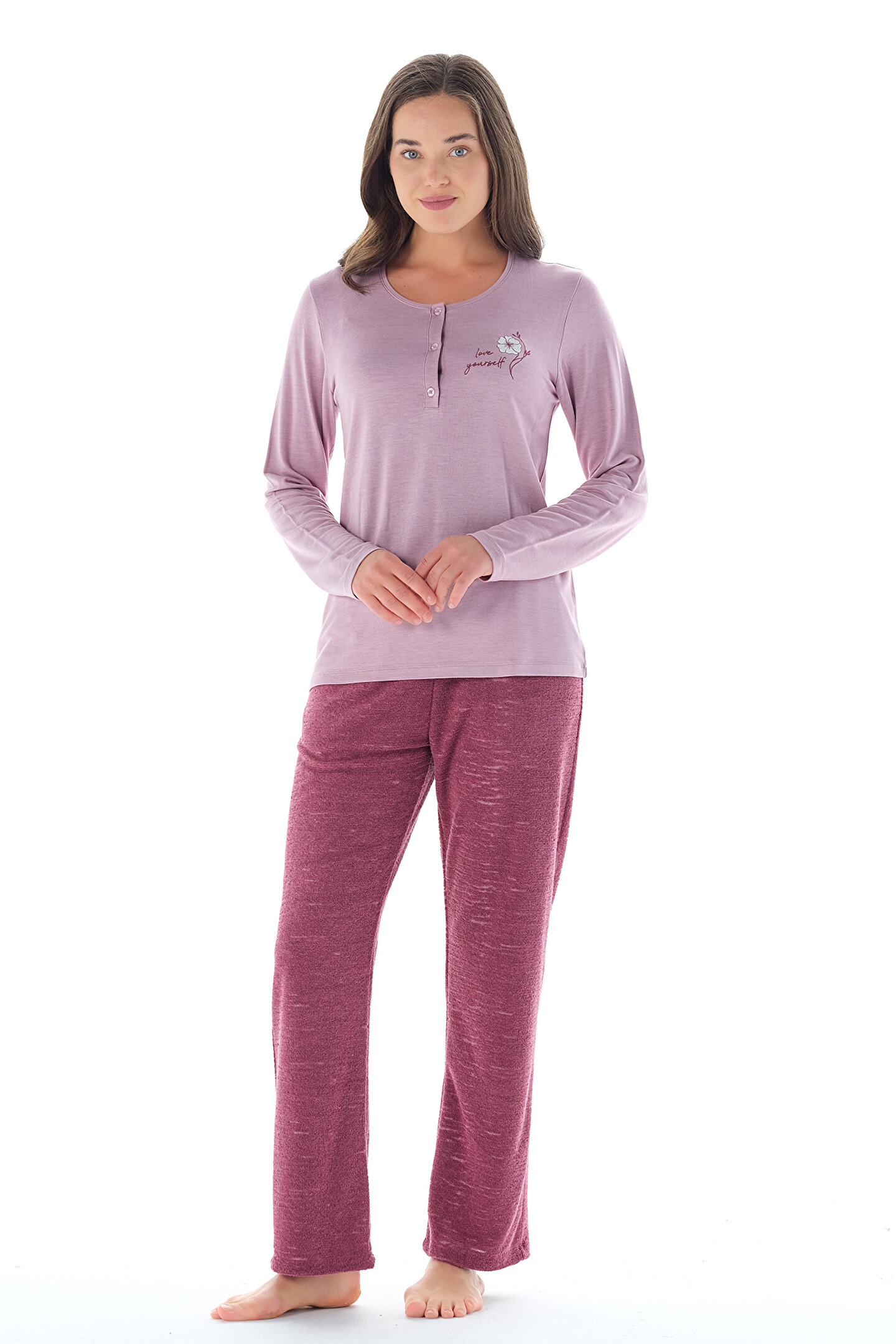 • FEYZA koleksiyonunun muhteşem parçalarından biri olan FEYZA modeli kendinizi şımartacağınız ya da hediye olarak yakınlarınızı çok mutlu edeceğiniz bir tasarım. • Kadın Grubu Beden Ölçüleri(cm.) • 24-34 XS = Göğüs :82 Bel :66 Basen :90 İç Boy:86 • 26-36 S = Göğüs :86 Bel :70 Basen :94 İç Boy:86 • 28-38 M = Göğüs :90 Bel :74 Basen :98 İç Boy:86 • 30-40 L = Göğüs :94 Bel :78 Basen :102 İç Boy:86 • 32-42 XL = Göğüs :99 Bel :83 Basen :107 İç Boy:86 • 34-44 XXL = Göğüs :104 Bel :88 Basen :112 İç Boy:86 • 36-46 3XL = Göğüs :109 Bel :93 Basen :117 İç Boy:86 • 38-48 4XL = Göğüs :114 Bel :98 Basen :122 İç Boy:86 • 40-50 5XL = Göğüs :119 Bel :103 Basen :127 İç Boy:86 • Bedenimi nasıl ölçeceğim? • Göğüs • Mezurayı göğsünüzün üzerinde en geniş noktasına yerleştirerek, göğsünüzün çevresi için ölçüm yapın. • Bel • Ellerinizi belinize koyun. Elinizin bulunduğu nokta bel noktanızdır. O noktadan belinizin çevresini ölçün. • Basen • Mezurayı kalçanızın en geniş yerine yerleştirerek, baseninizin çevresini ölçün. • İç Bacak Boyu • Bacak içini en üst çatal noktasından bilek kemiğine kadar ölçün. • Mezurayı düz tutmaya; yere paralel olacak şekilde, kaydırmamaya dikkat etmelisiniz. Ölçü alırken kendinizi rahat bırakmalı, nefesinizi tutmamalı ve göğüs kafesini şişirmeden ölçü almalısınız. • Ölçü alırken çıplak beden üzerinden almalısınız.