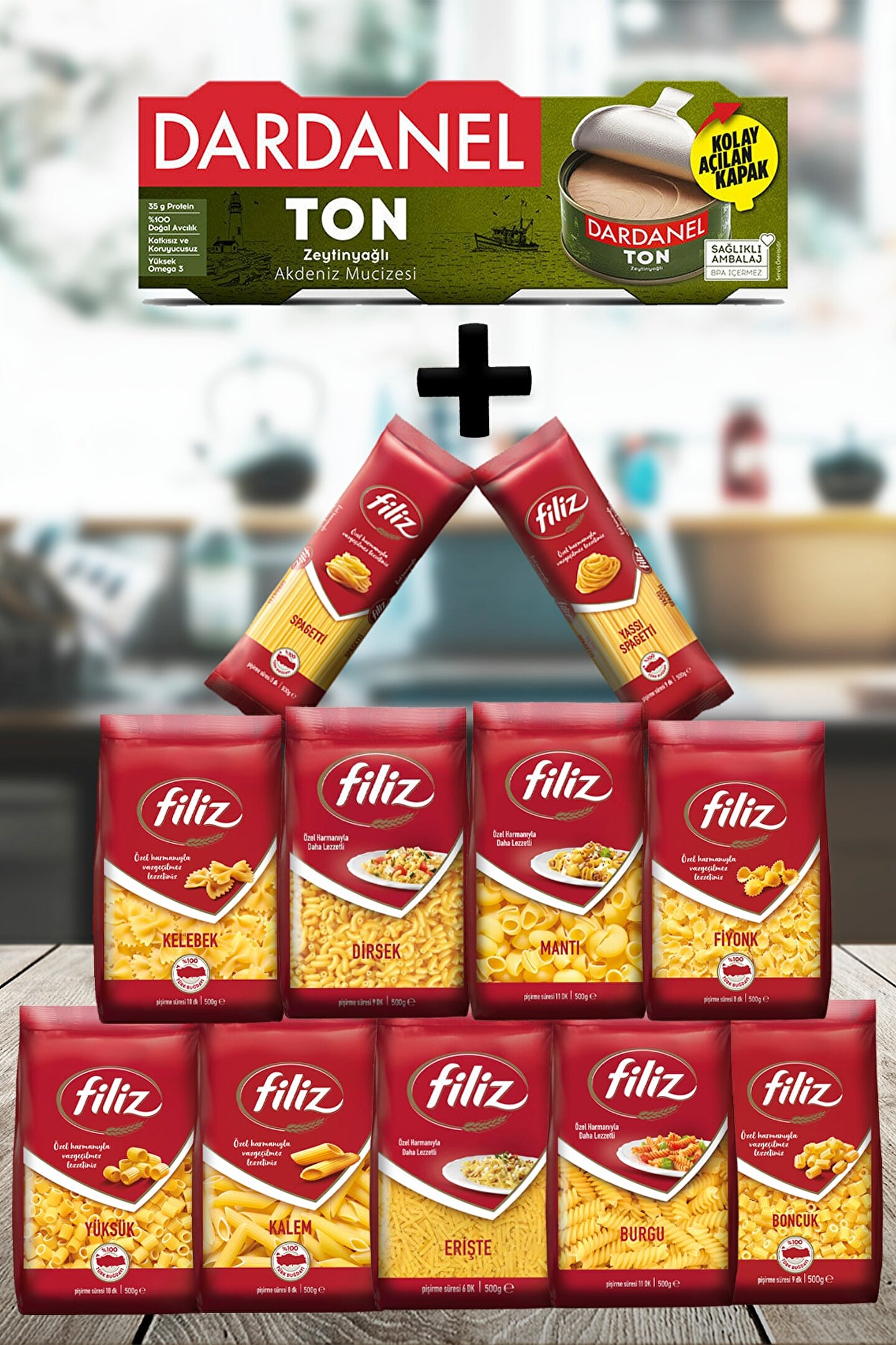 FİLİZ Makarna Ile Dardanel Ton Zeytinyağ Uyum Paketi 12 Parça