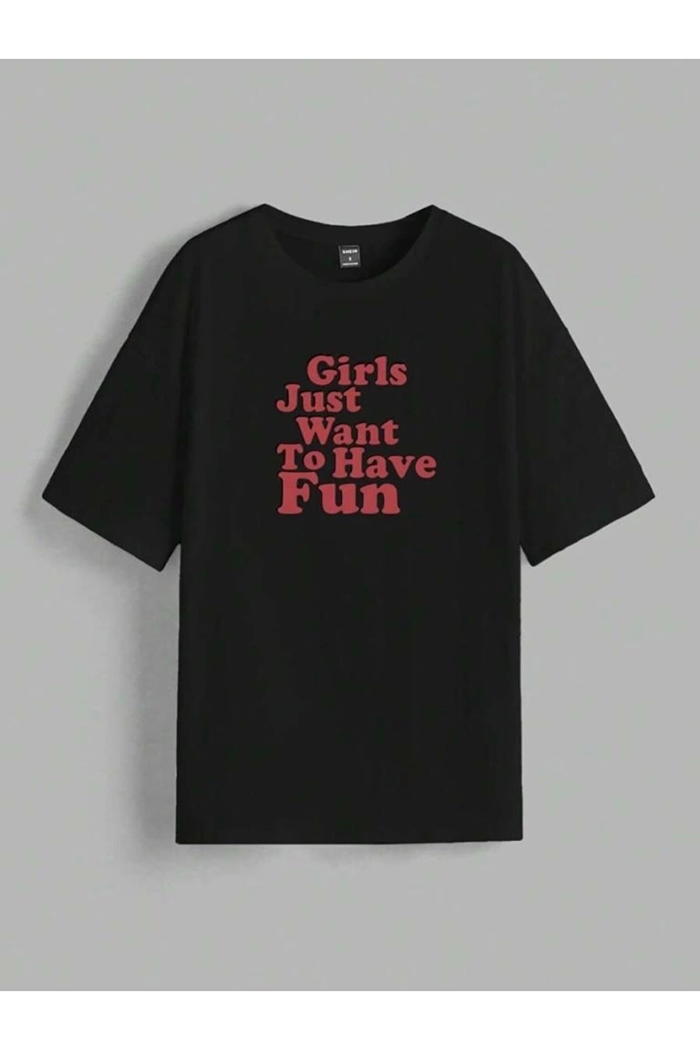 Flexium Kadın Baskılı Oversize T-shirt - Siyah