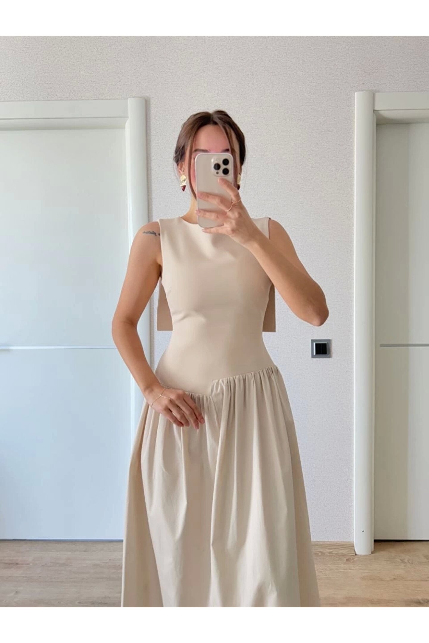 - Bej rengiyle şıklığı ve zarafeti bir arada sunan bu elbise, günlük kullanıma uygun casual tasarımıyla dikkat çeker.; - %95 polyester ve %5 likra karışımı kumaşı sayesinde esneklik ve konforu bir arada sunar.; - Kolsuz tasarımı ile yaz aylarında serinlik ve rahatlık sağlar.; - Düz deseniyle sade ve zamansız bir görünüm elde edilir.; - Regular kalıbı sayesinde vücut hatlarınıza uyum sağlar ve rahat bir kullanım sunar.; - Krep kumaşı, hafif yapısıyla gün boyu rahatlık hissi verirken, aynı zamanda şık bir görünüm kazandırır.; - Kemersiz tasarımı ile vücut hatlarınızı doğal bir şekilde vurgular ve sade bir stil oluşturur.; - Bisiklet yaka detayı ile modern ve minimalist bir stil sunar.; - Cepsiz yapısıyla minimalist çizgileri korurken, sırt dekoltesi ile feminen dokunuşlar ekler.; - Uzun boyu ile hem günlük hem de özel günlerde tercih edebileceğiniz çok yönlülükte bir parça haline gelir.; - Tüm sezonlar için uygun olan bu elbise, yılın her zamanında gardrobunuzun vazgeçilmezlerinden biri olacak.; - Yetişkinler için tasarlanmış olup, M beden seçeneğiyle geniş beden skalası sunar.; - Kolay bakım için Type 1 yıkama talimatına uygun şekilde temizlenebilir.