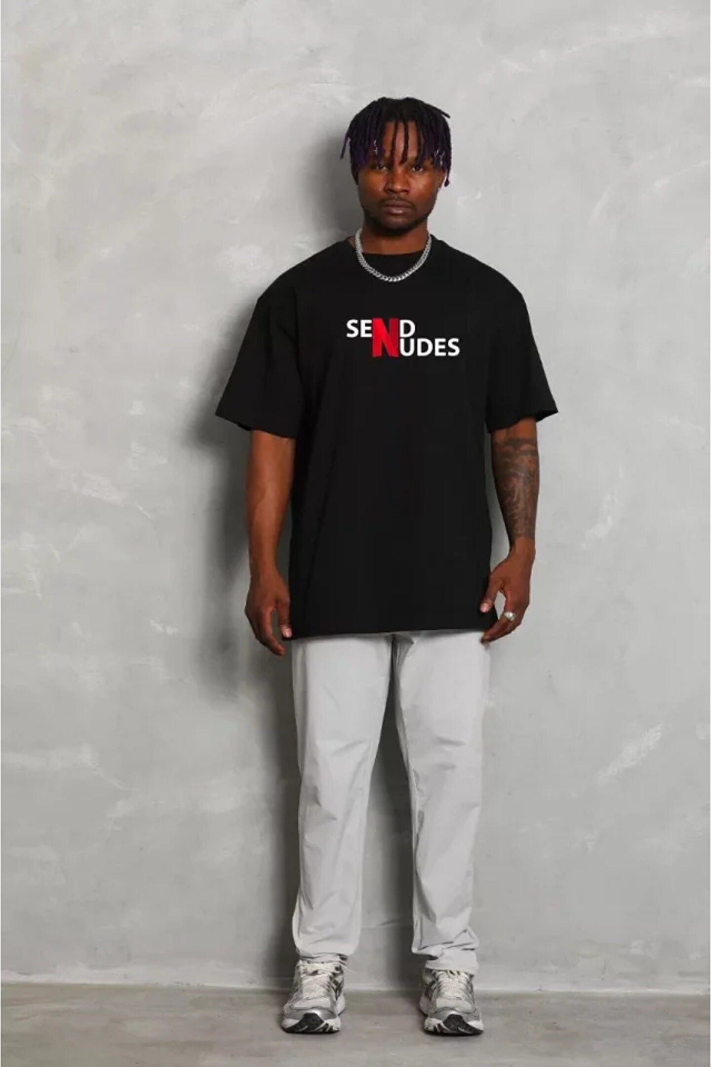 Flexium Unisex Bisiklet Yaka Double Oversize Baskılı T-Shirt - Siyah