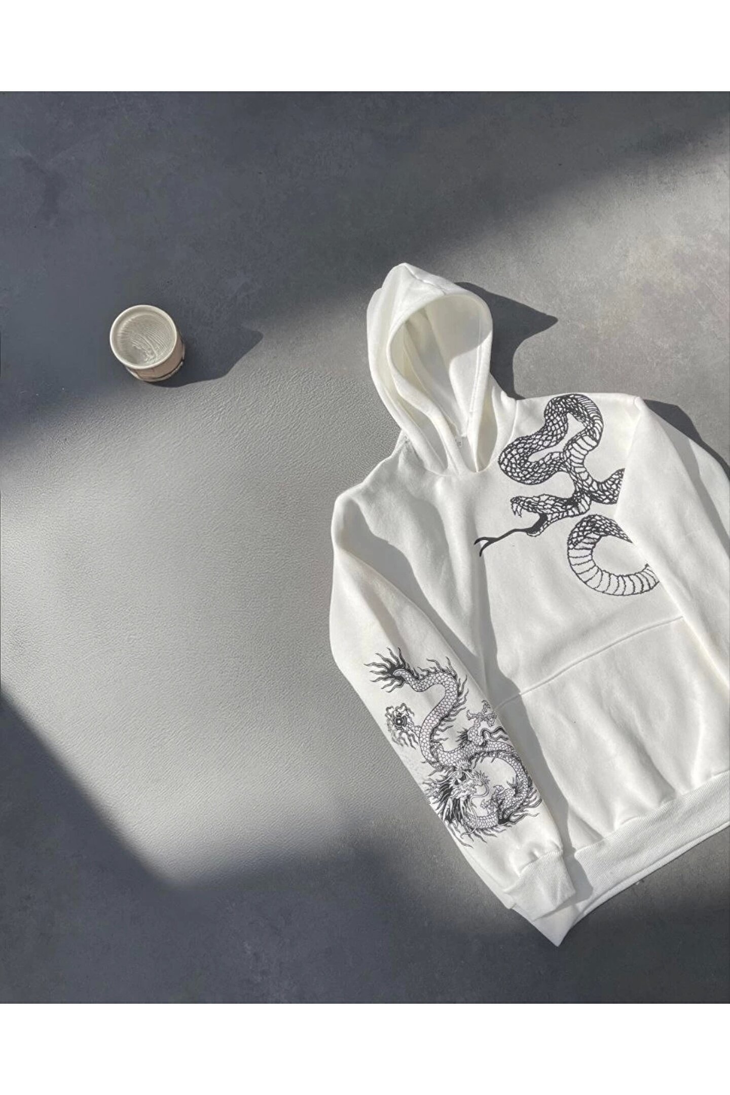 Flexium Uzun Kol Kapüşonlu Baskılı SweatShirt - Beyaz