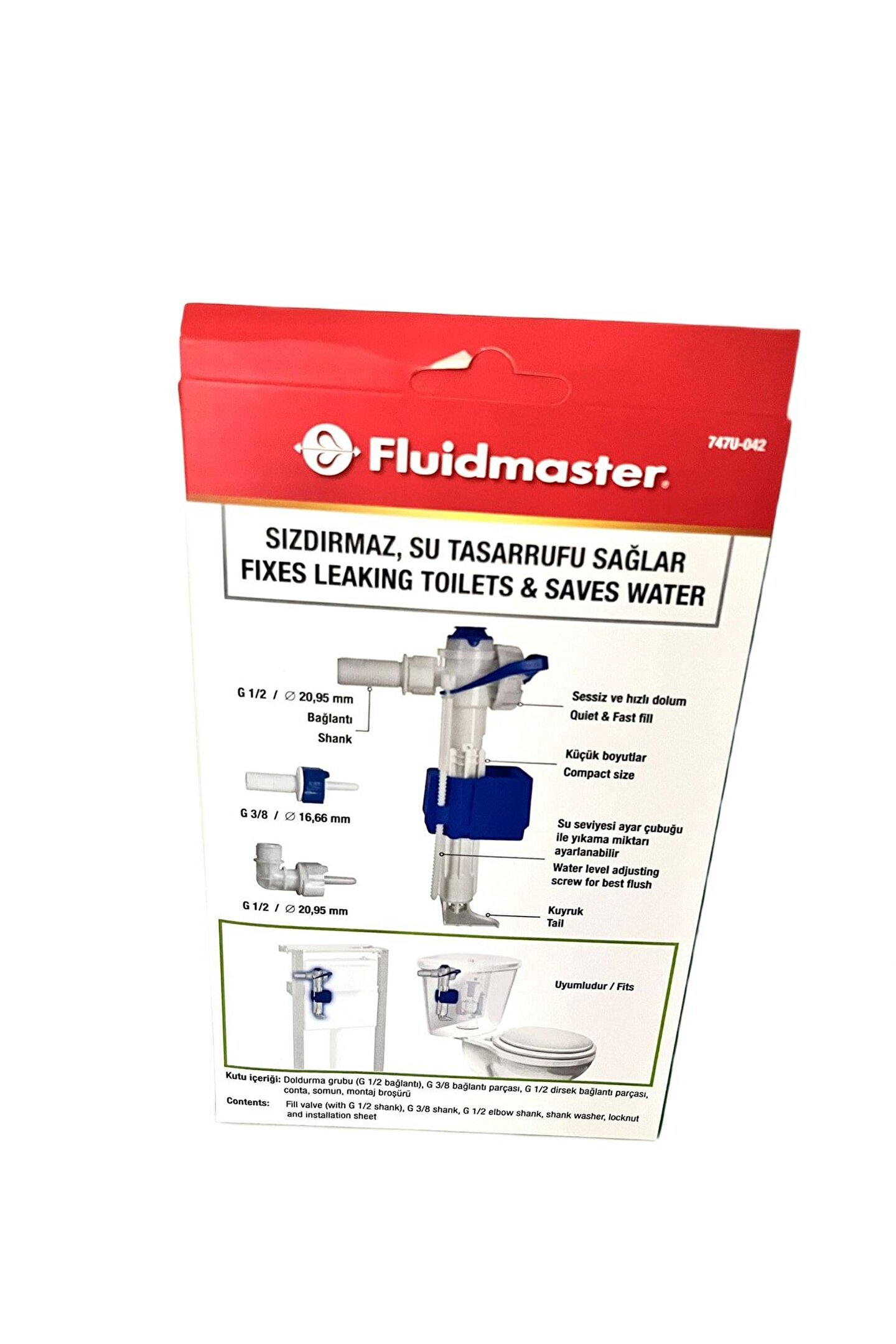 Vitra, Kale, Serel ve Creavit markaları ile uyumlu gömme rezervuar doldurma grubu, banyonuzun estetiğini bozmadan kolayca monte edilebilir; 3/8", 1/2" ve 1/2" bağlantı seçenekleriyle çeşitli banyo armatürlerine uyum sağlar, böylece farklı modellerle uyumlu bir kullanım sunar; Rezervuar iç takım olarak tasarlanmış bu ürün, banyonuzun şıklığını korurken işlevselliği de artırır;