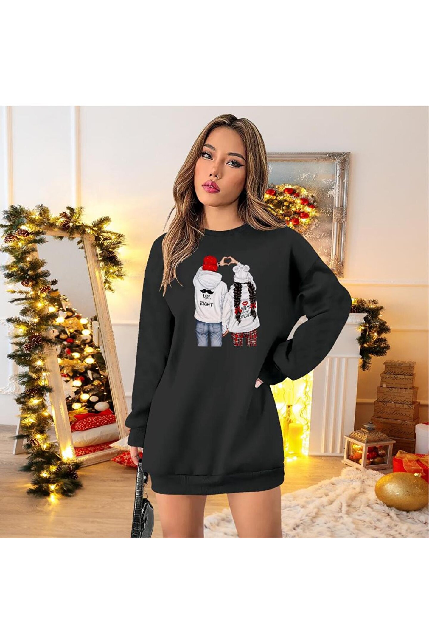 Kadın Uzun Kollu Bisiklet Yaka Desenli Viskon Iki Iplik Elbise