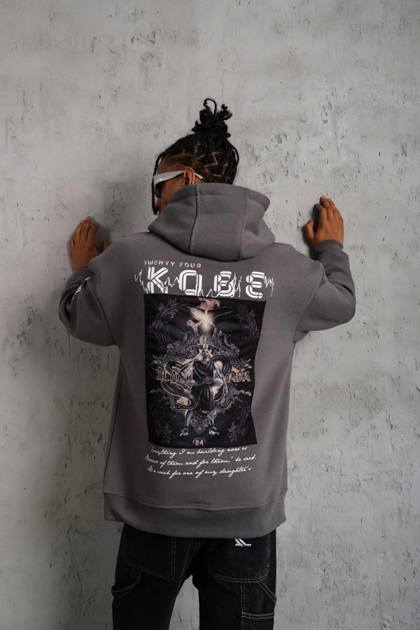 fourblack Erkek Baskılı Kapüşonlu Sweat - Gri