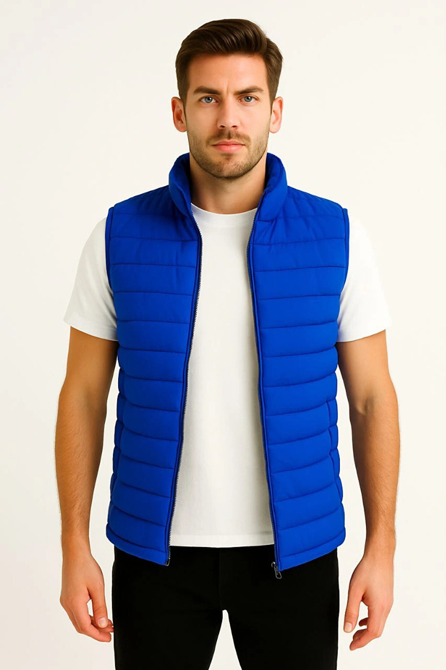fourblack Erkek Şişme Fermuarlı Yelek Su itici Kapitone Astarlı Kumaş Cepli Hafif Kışlık Spor Rahat Kalıp - Sa