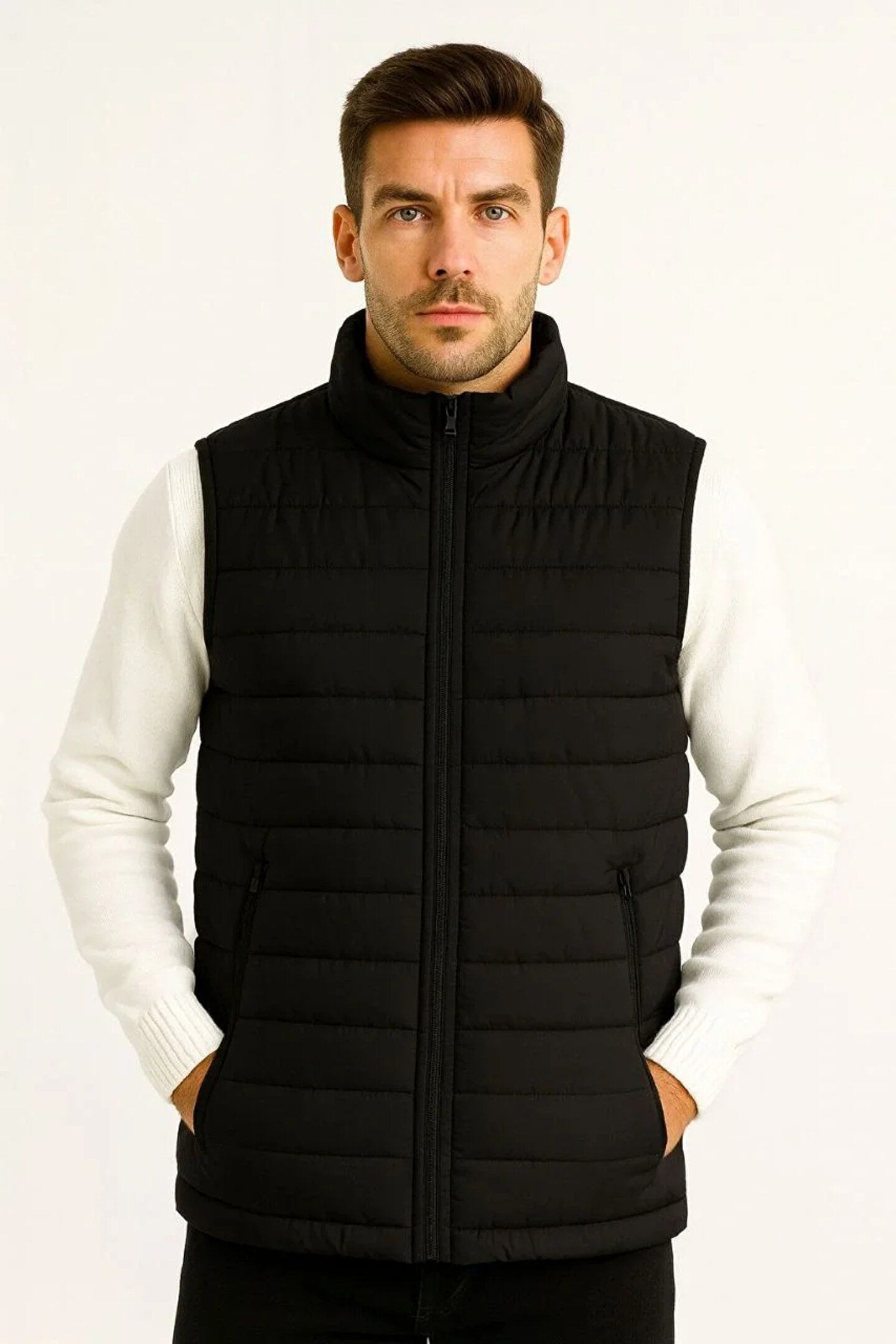 fourblack Erkek Şişme Fermuarlı Yelek Su itici Kapitone Astarlı Kumaş Cepli Hafif Kışlık Spor Rahat Kalıp - Si