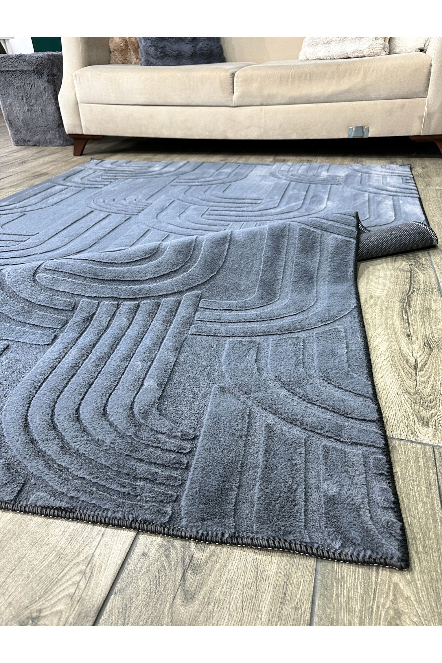 Freya Home Modern Yumuşak Dokulu Tüy Dökmez Yıkanabilir Tavşan Tüyü Peluş Halı Antrasit
