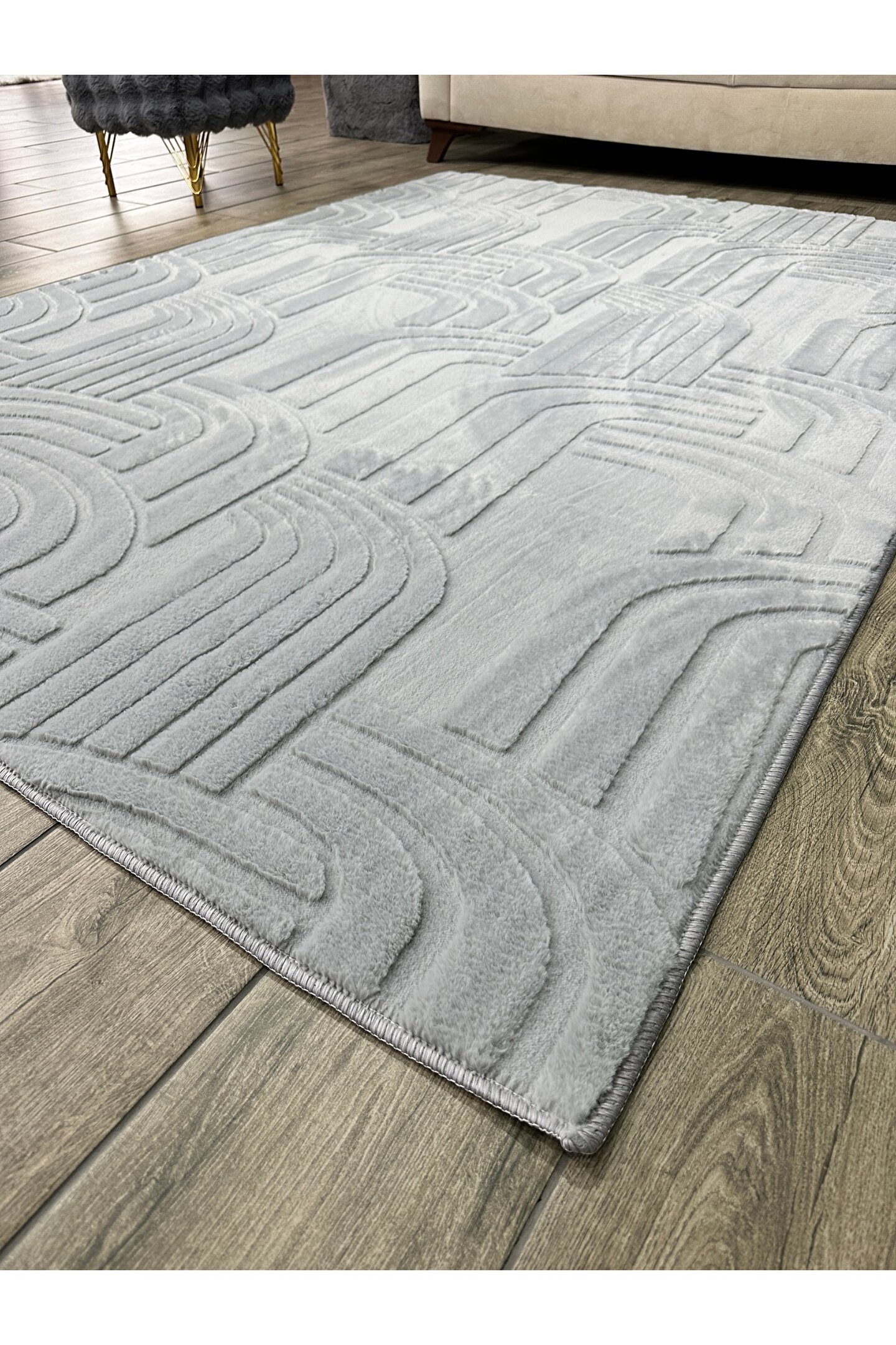 Freya Home Modern Yumuşak Dokulu Tüy Dökmez Yıkanabilir Tavşan Tüyü Peluş Halı Gri