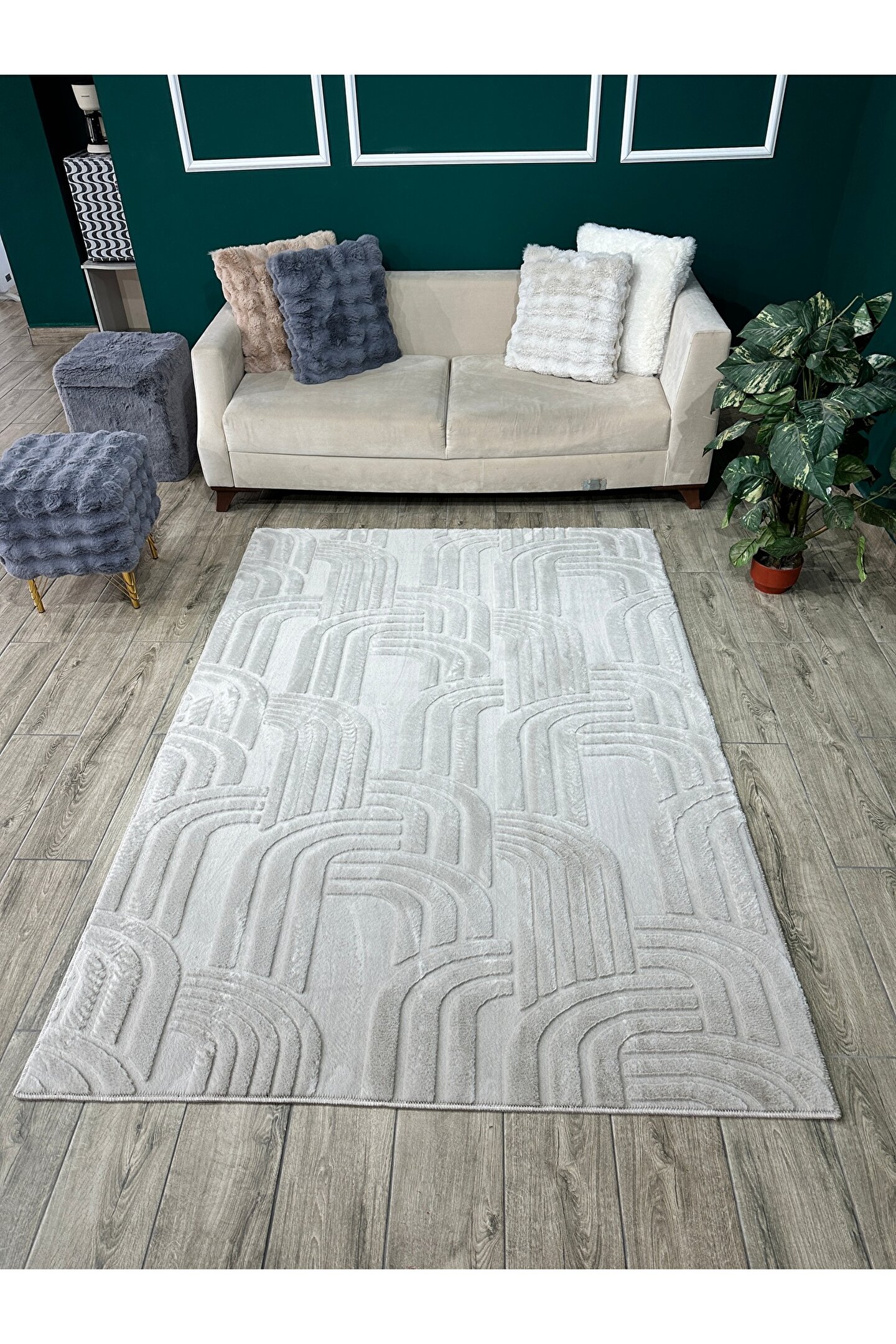 Freya Home Modern Yumuşak Dokulu Tüy Dökmez Yıkanabilir Tavşan Tüyü Peluş Halı Vizon