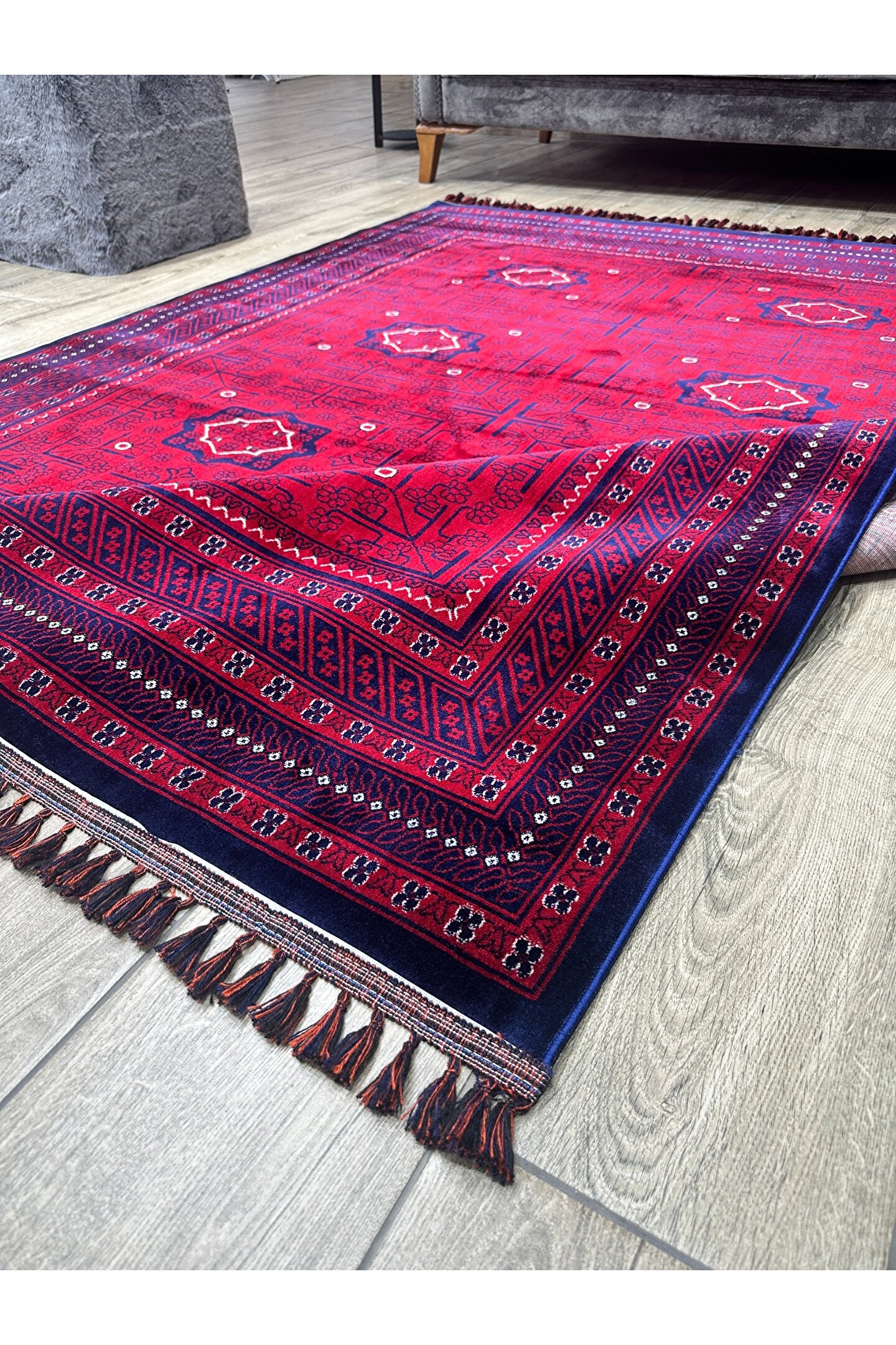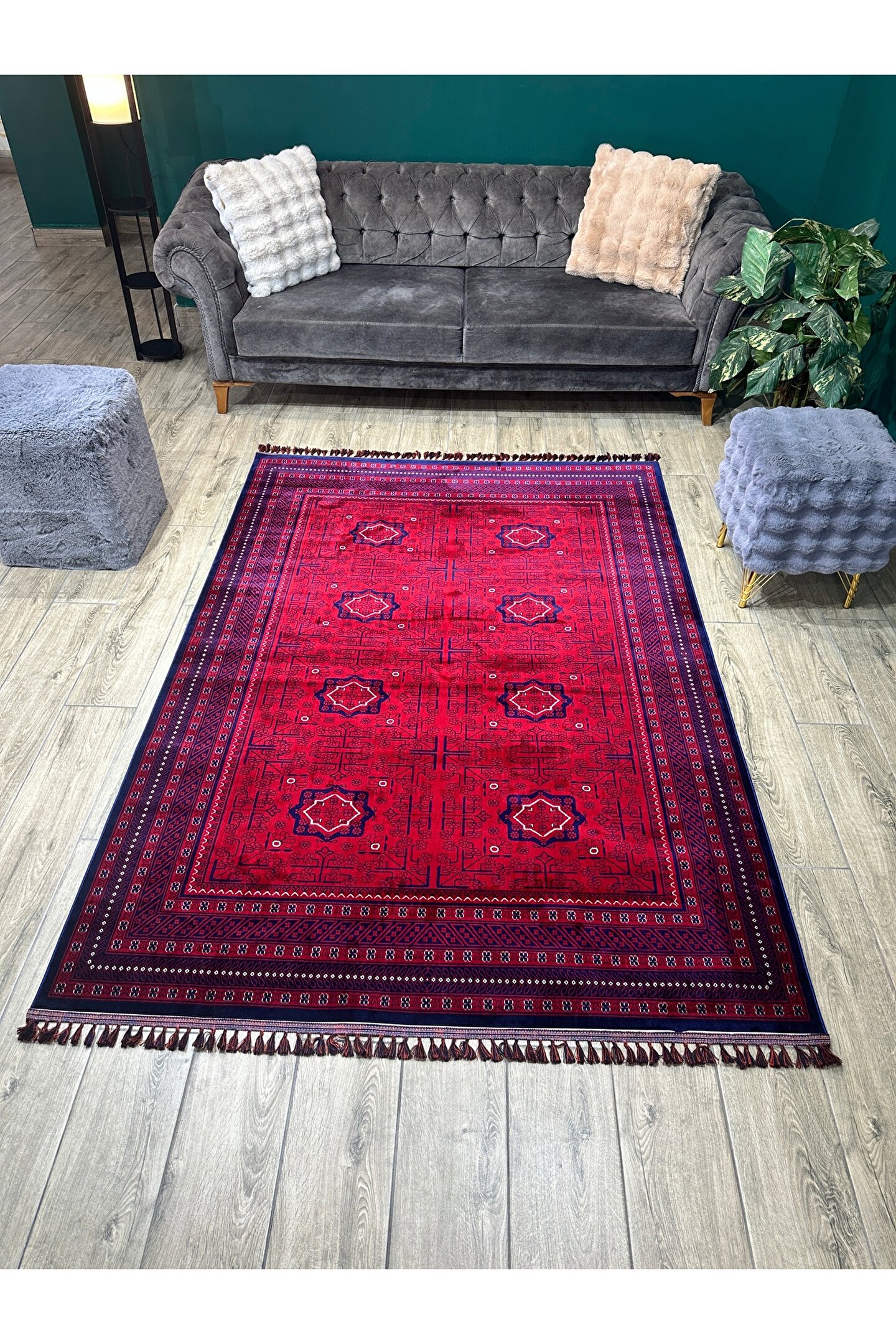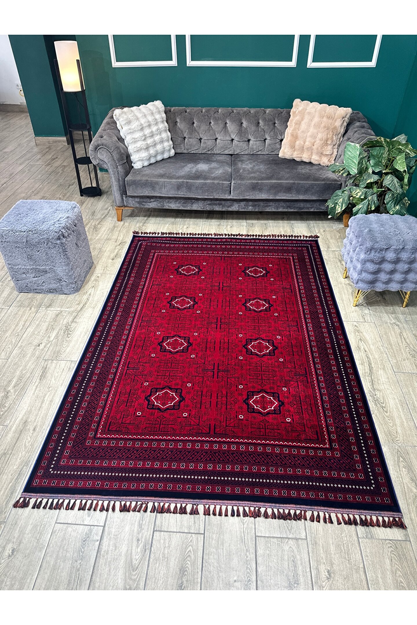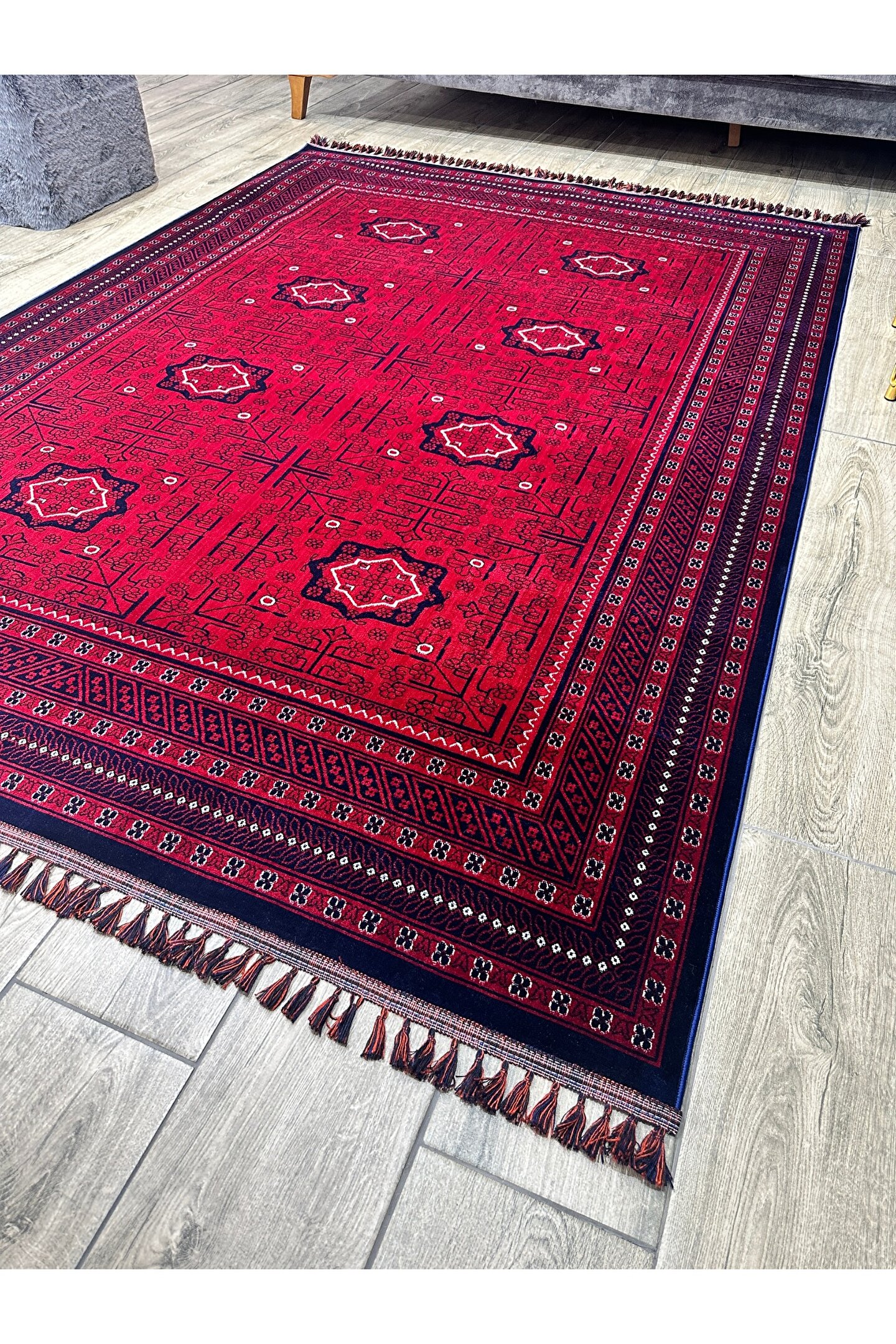 Freya Home Otantik Desenli Afgan Uşak Halısı Yıkanabilir Kaymaz Taban Makine Halısı