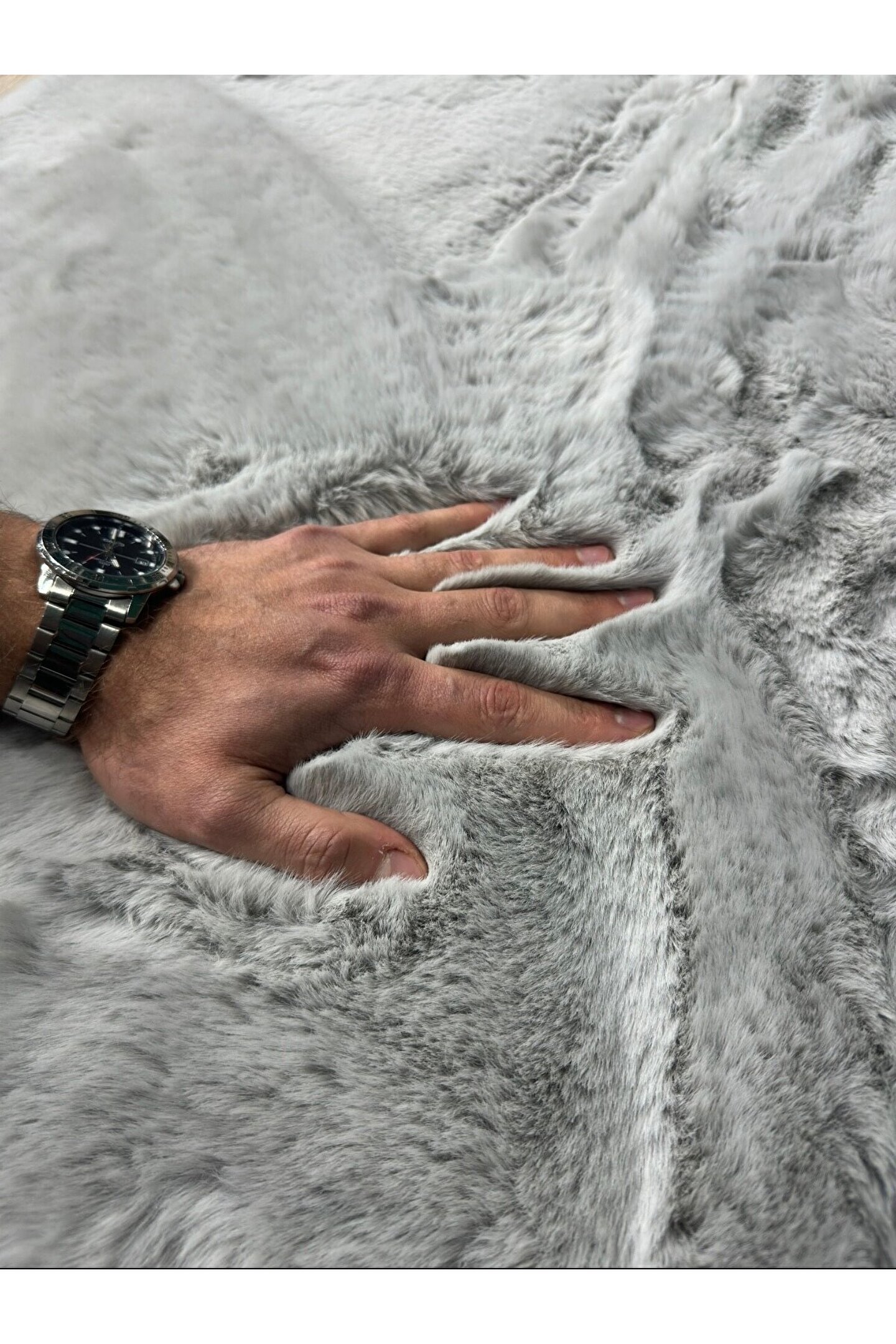 Freya Home Premium Yumuşacık Tavşan Tüyü Serisi Tüy Dökmez Kaymaz Dokuma Taban Peluş Halı Gri