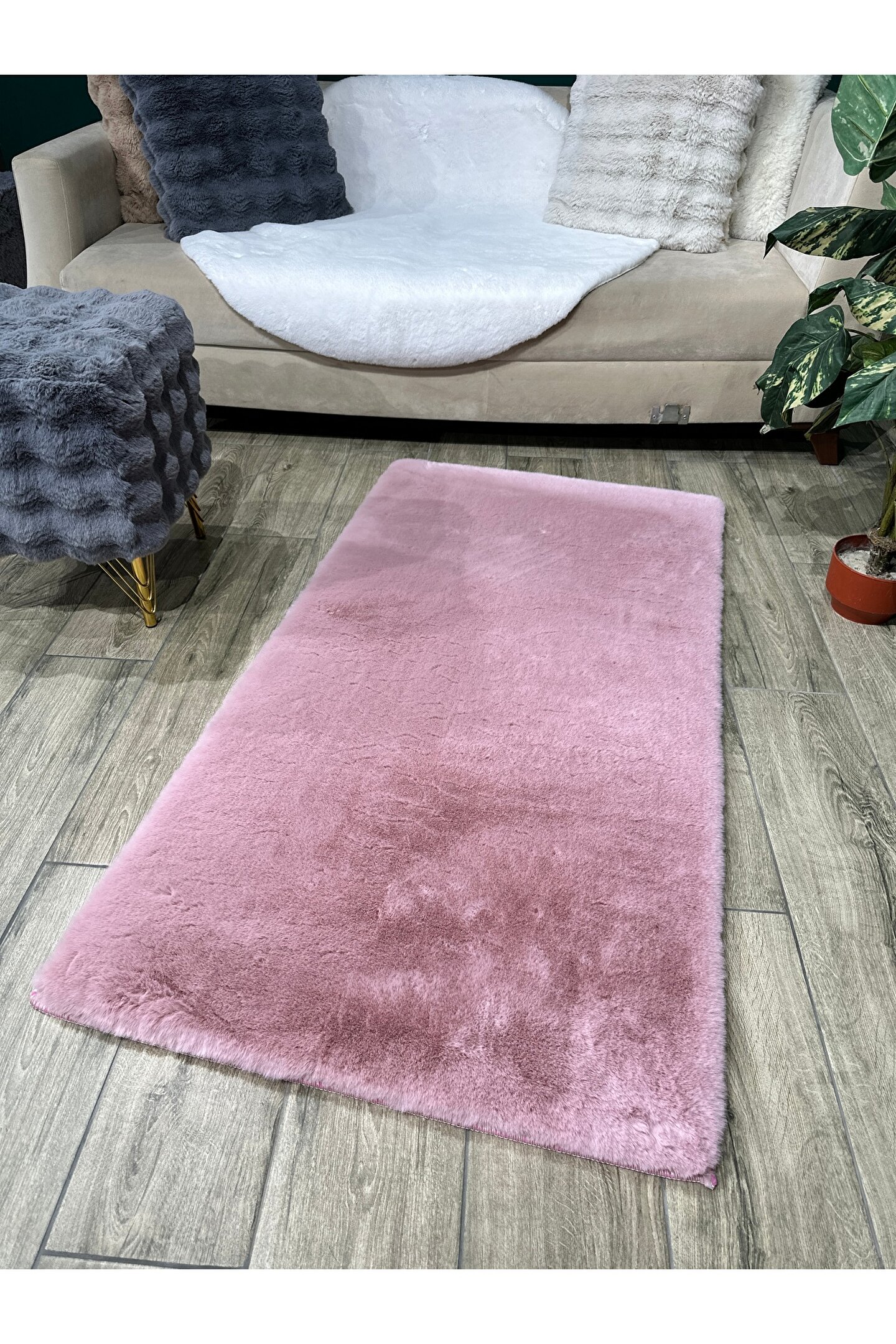 Freya Home Premium Yumuşacık Tavşan Tüyü Serisi Tüy Dökmez Kaymaz Dokuma Taban Peluş Halı Pudra