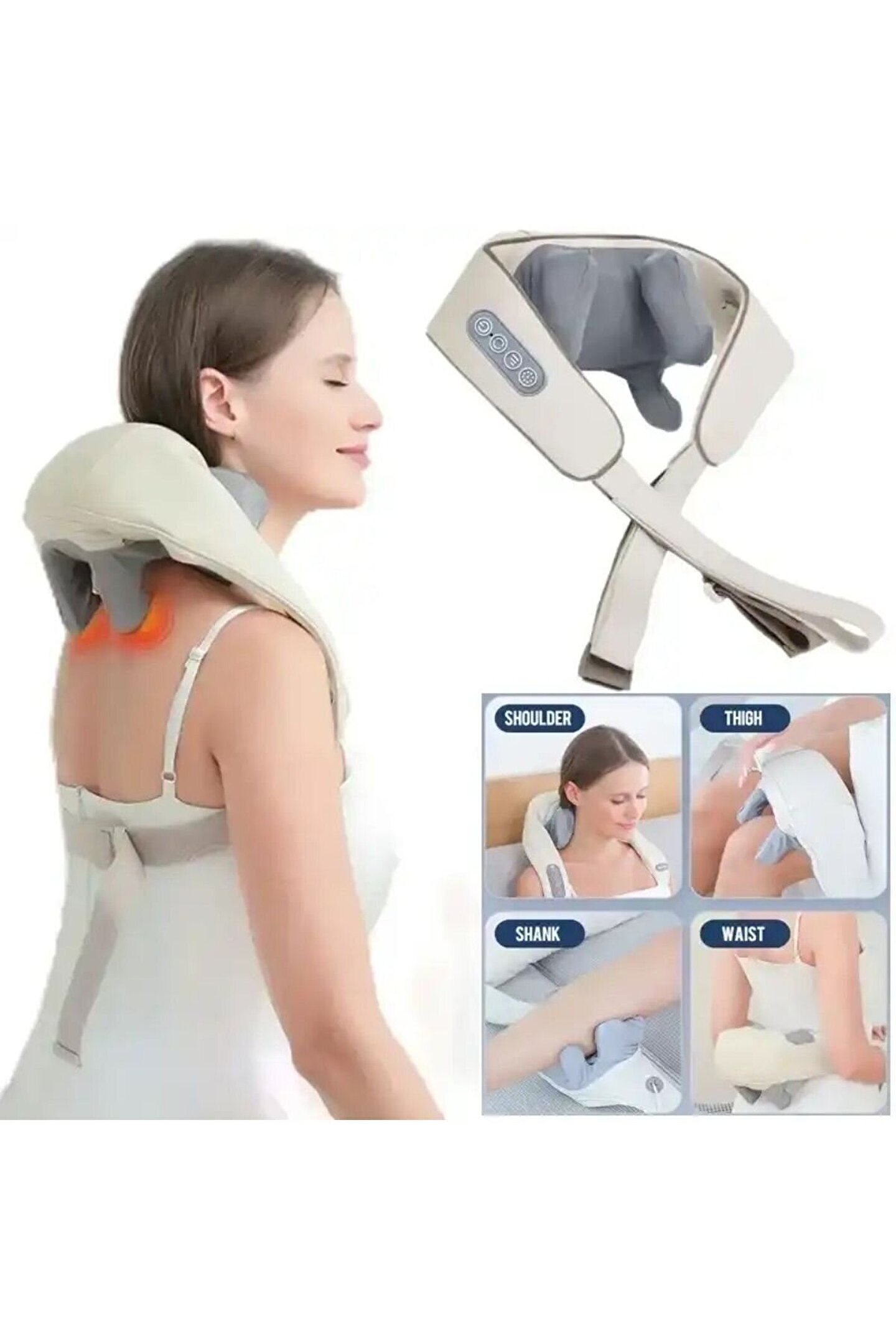 Elektrikli ısıtmalı ovmalı boyun ve sırt masaj cihazı kablosuz bej rengi