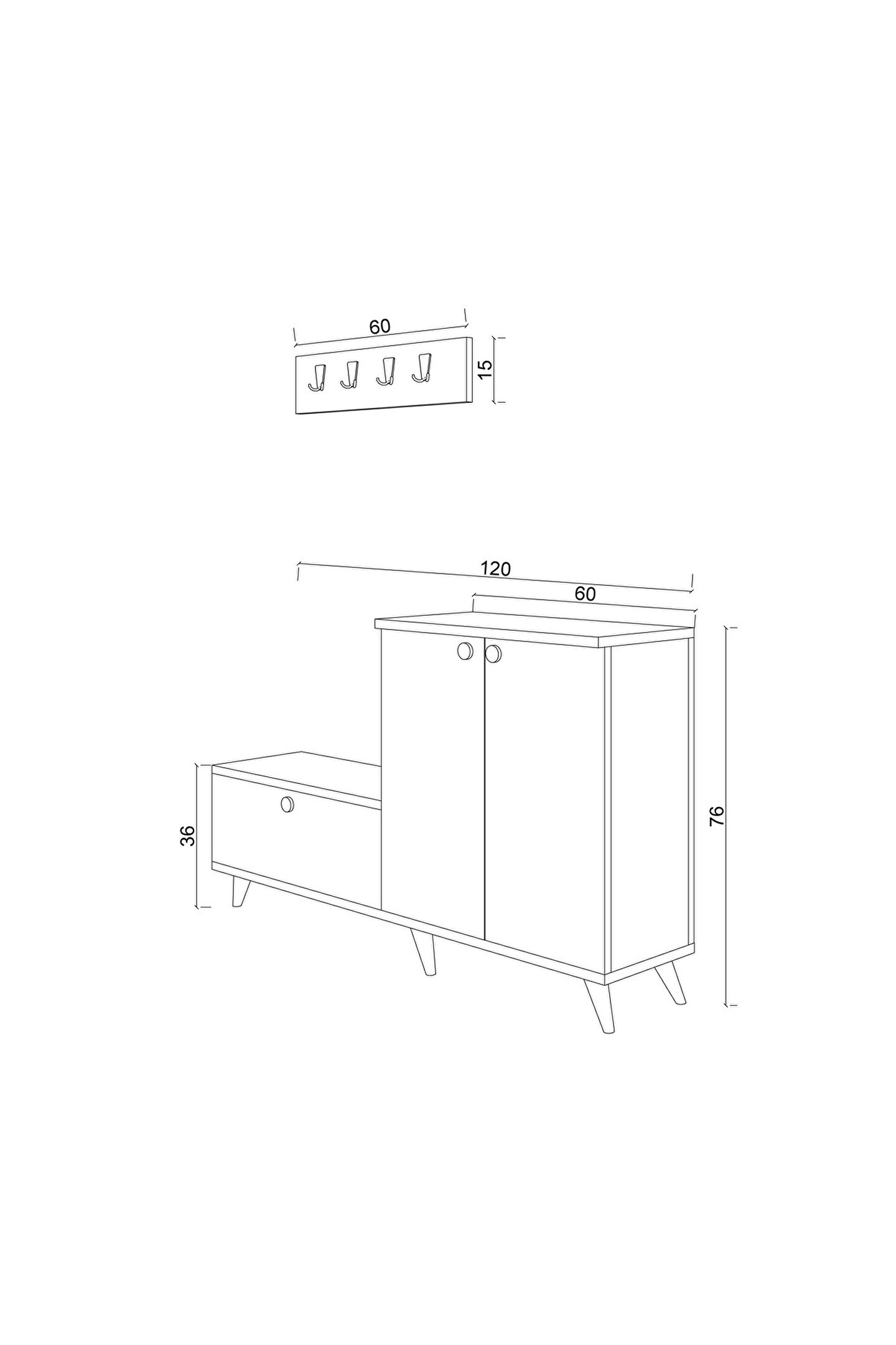 Ürün Ölçüleri: Ayakkabılık Modülü: G:120 cm D:30 cm Y:76 cm G: Genişlik / D: Derinlik / Y: Yükseklik - Askı Modülü:G:60cm Y:15cm