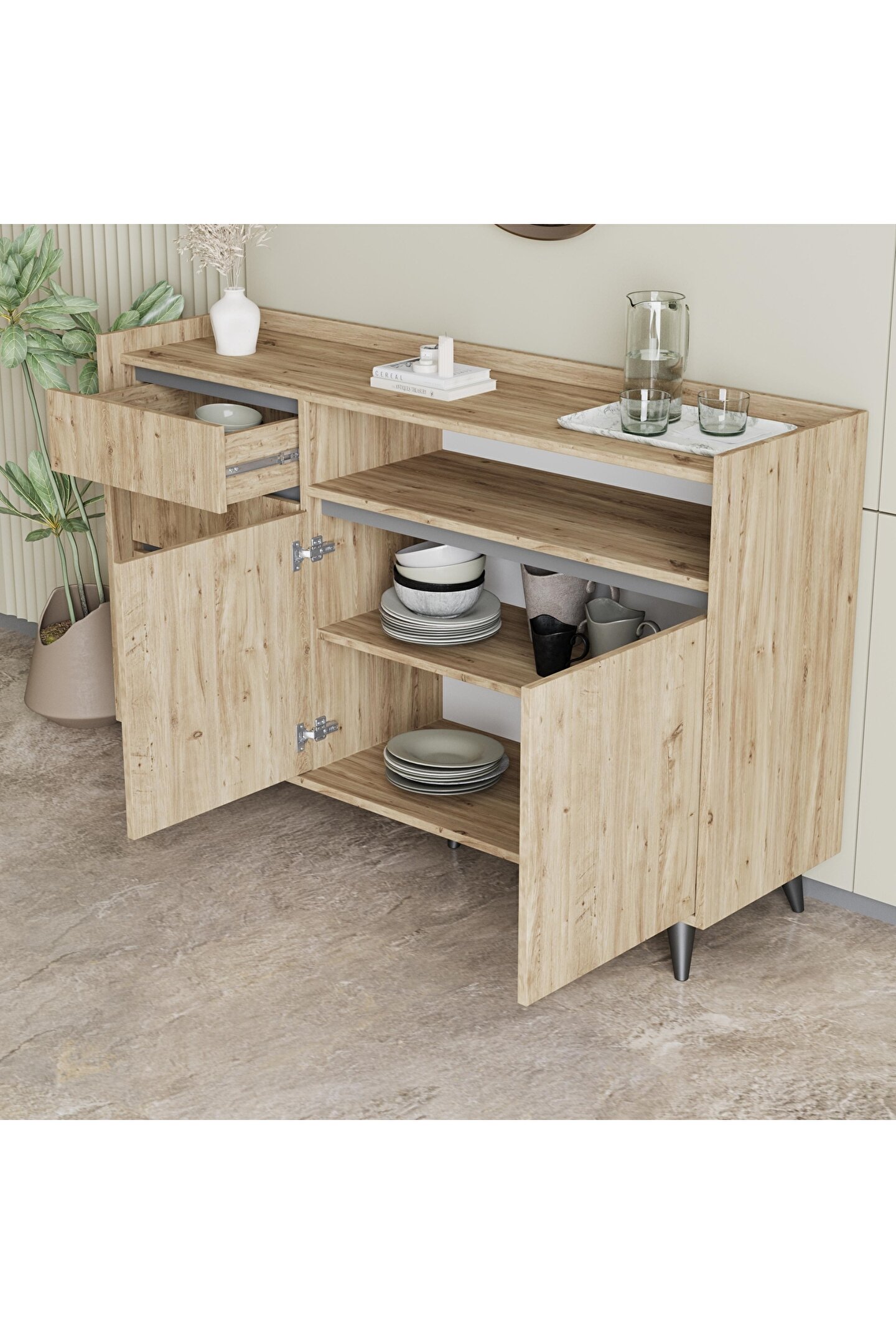 Genişliği 140 cm olan bu konsol, genişeşyalarınızı rahatça saklamanız için idealdir.
