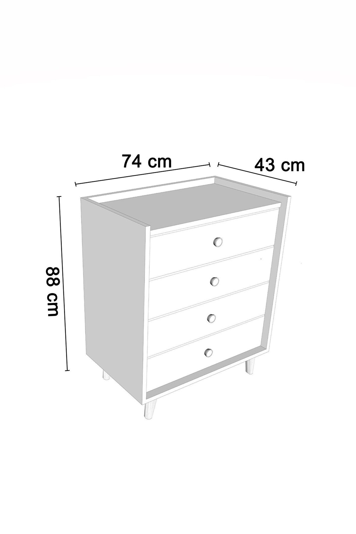 Şifonyer: G:74 cm d:43 cm y:88 cm