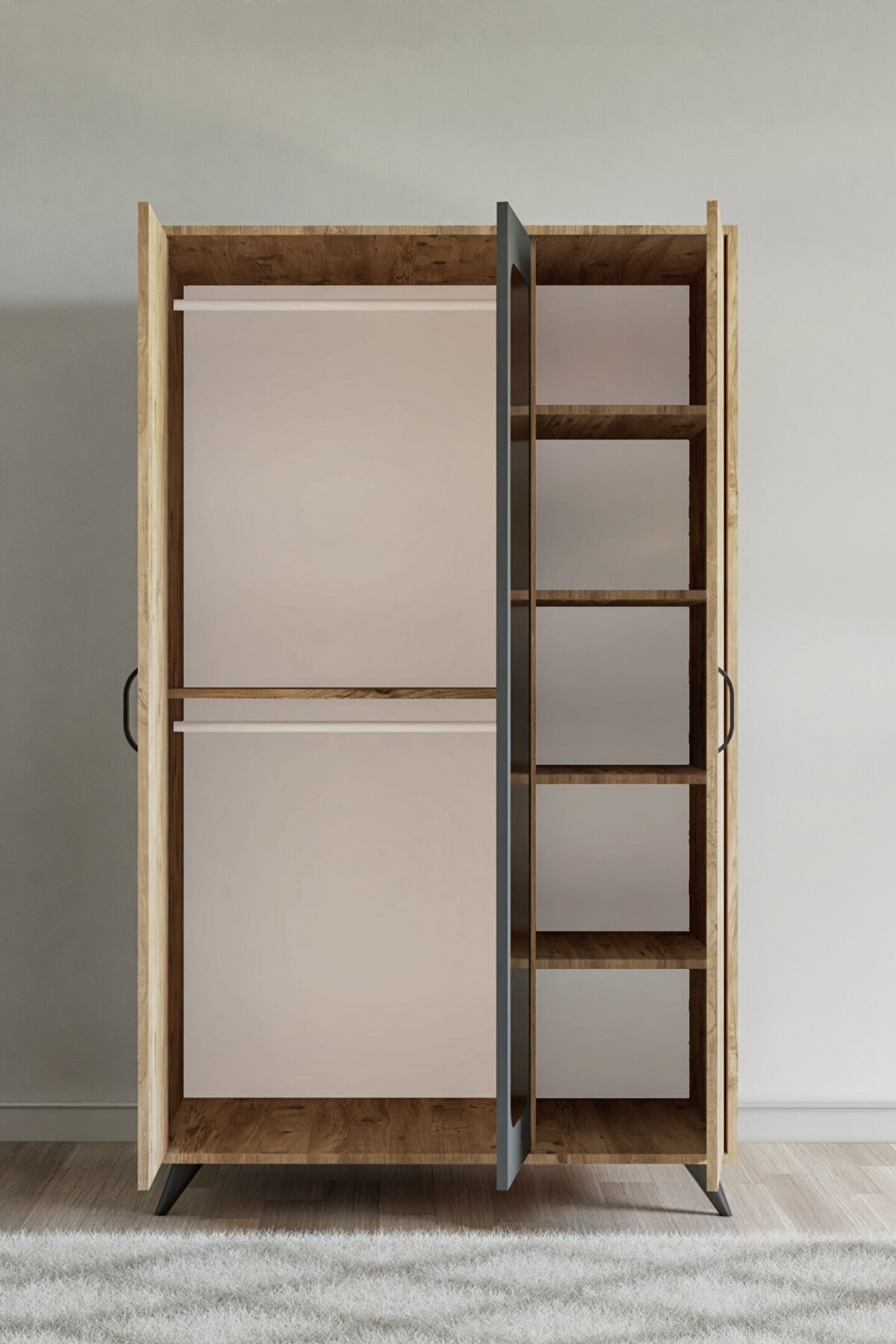 LİNEA 3 KAPILI GARDIROP ATLANTİK ÇAM-ANTRASİT