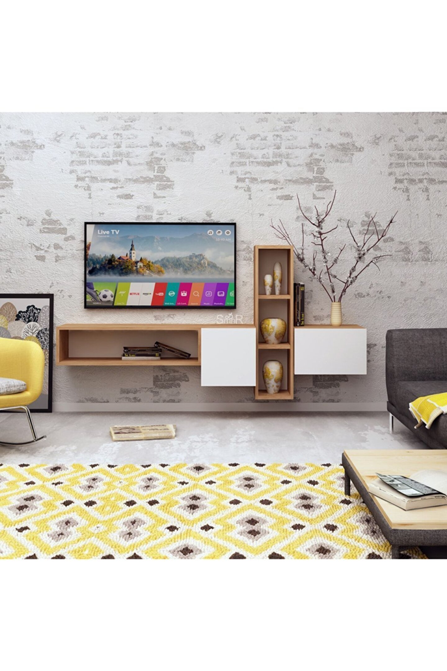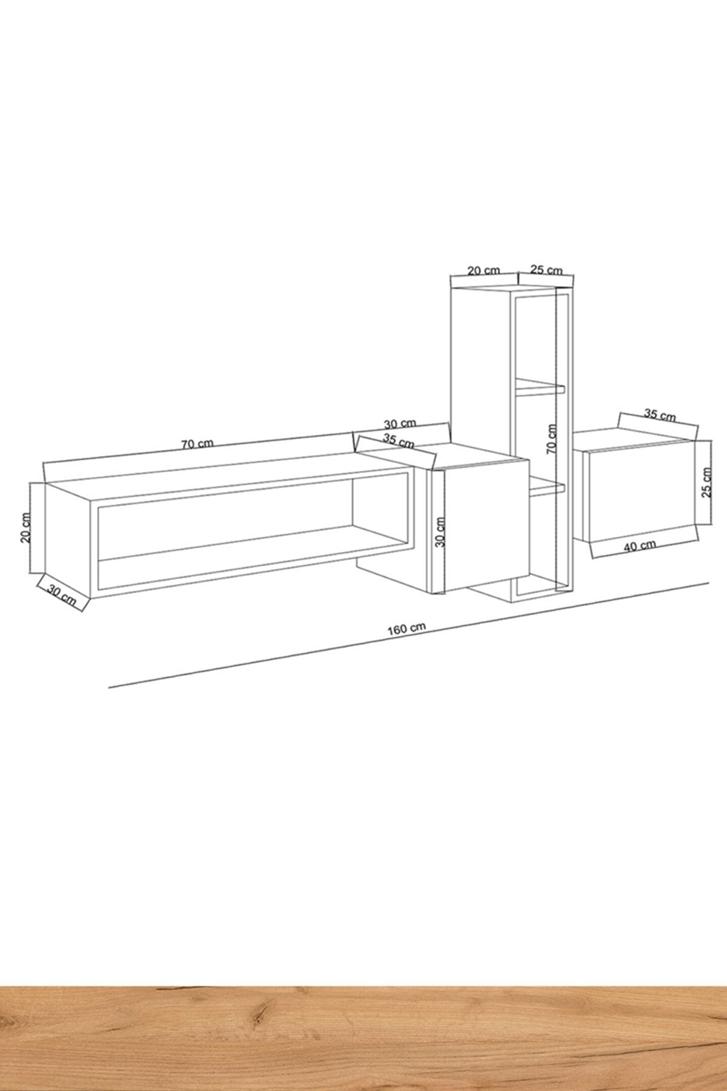 SAHRA TV ÜNİTESİ Ürün Ölçüleri G160 cm D35 cm Y70 cm G:Genişlik D:Derinlik Y:Yükseklik Malzemeler GÖVDE: ROYAL MEŞE SUNTALAM KAPAK: BEYAZ SUNTALAM Renk BEYAZ /ROYAL MEŞE Ürün Özellikleri *Kullanılan Tüm Malzemeler TSE onaylı, E1 Kalitesinde olup Kanserojenmadde içermez ve Anti Bakteriyeldir. ; *Duvara montajlanarak kullanılmalıdır. ; Ürün gövdesi 18 mm kalınlığındaParlak Beyaz/Altın Meşe renginde suntalam malzeme kullanılarak üretilmiştir. ; Ürünmodüllerden oluşmaktadır ve dilediğiniz gibi modüllerin yerlerinideğiştirebilirsiniz. ; Yaşam alanlarına modern çizgileriyle şıklık kazandırırken, kapalı ve açık bölmeleri ile depolamaihtiyacınızı giderebilecek niteliktedir. ; Montaj Ürünlerimiz özel kargo paketinde demonte olarak teslimedilir. ; Paketlerde gerekli kurulum şeması, tüm vida ve aksesuarlarınmontaj şeması ile uyumlu malzeme torbası ve kullanma kılavuzu çıkmaktadır. ; Kurulum müşteriye aittir. ; Hızlı ve hatasız kurulum için montaj şeması bulunmaktadır. ; Ürün kurulumunda profesyonel yardım alınmalıdır. ; Ürün montajıtamamlandığında mutlaka duvara sabitlenmelidir. ; Montaj İçin GerekliAletler *Şarjlı Tornavida *Çekiç Değişim ve İadeKoşulları Ürünü kargodan teslim alınırken paketler mutlaka kontroledilmeli, hasarlı paket veya ürünler teslim alınmamalı ve kargo yetkilisinehasar tespit tutanağı hazırlanması doğrultusunda yardım talep etmenizgerekmektedir. ; Çevreye ve sağlığa zararsız kanserojen madde içermeyen E1kalite standardında malzeme kullanılmıştır. ; Aksesuarlar * Montaj: Ürün kurulu olmadan (demonte olarak) kutulu haldeteslim edilmektedir. ; * Kutu içinde tüm kurulum için gerekli olan malzemeçıkmaktadır (Bazı ürünlerin kurulumu için ek olarak tornavida, çekiçgerekebilir);