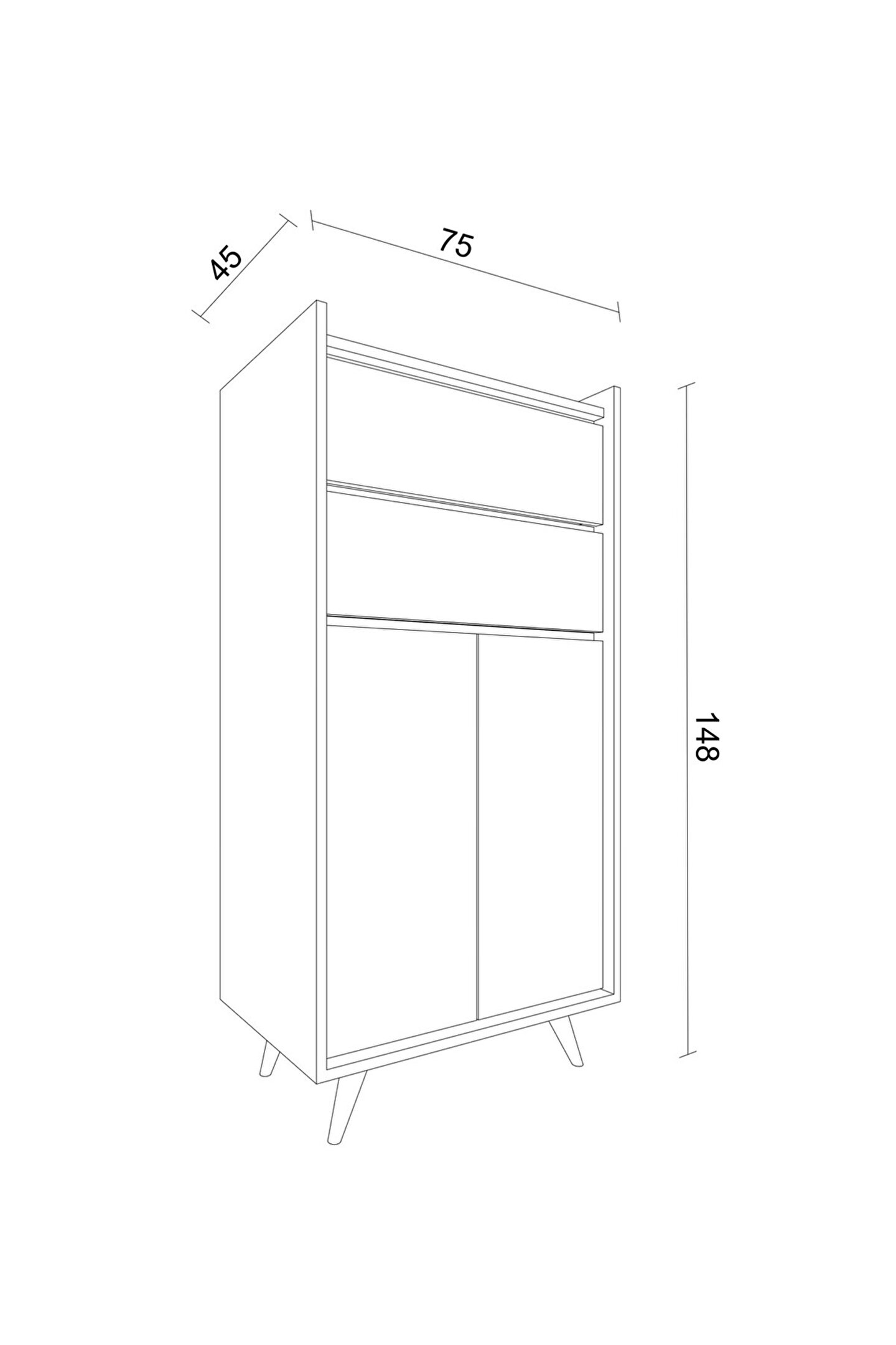 G:75 cm d:45 cmy:148 cm