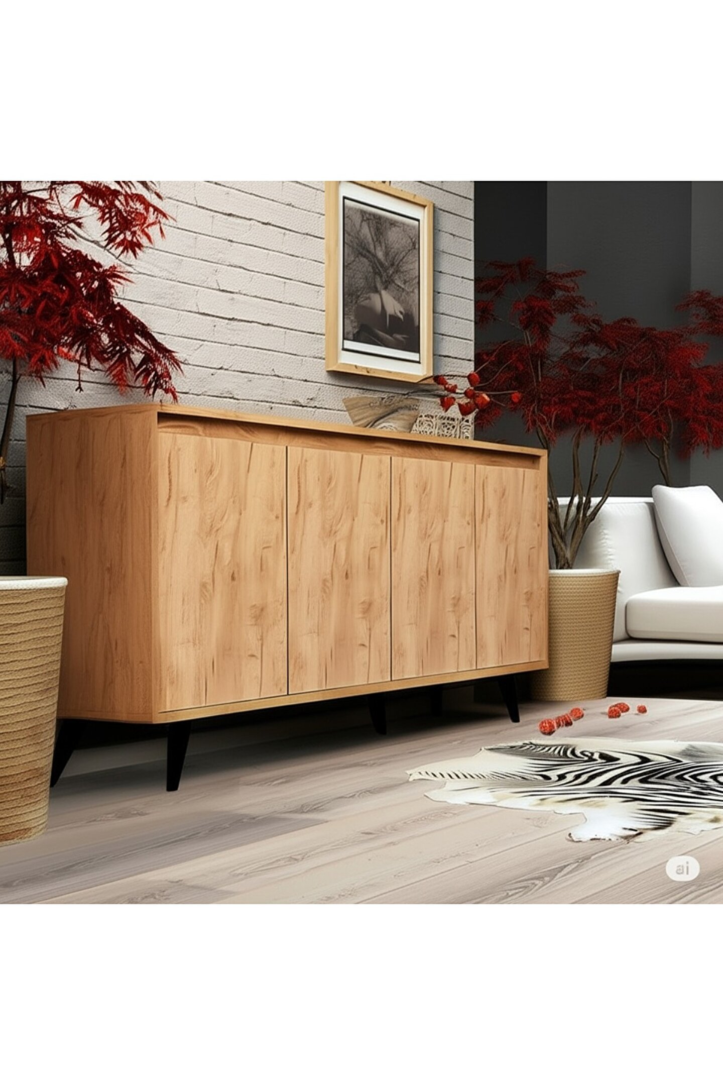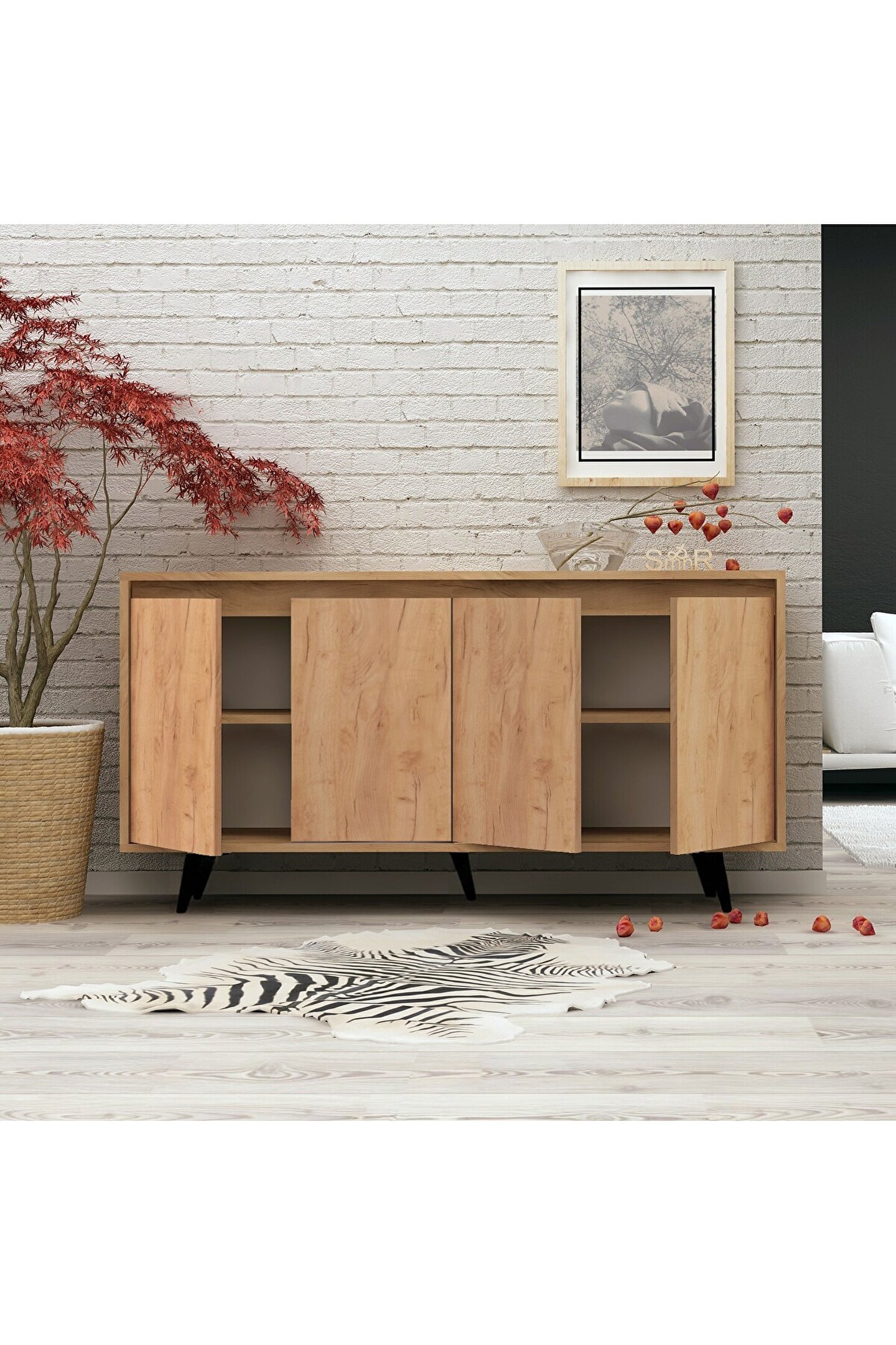 Ürün gövdesi 18 mm kalınlığında Safir Meşe renginde suntalam malzeme kullanılarak üretilmiştir. Yaşam alanlarına modern desenleriyle şıklık kazandırırken, kapalı ve açık bölmeleri ile depolama ihtiyacınızı giderebilecek niteliktedir.