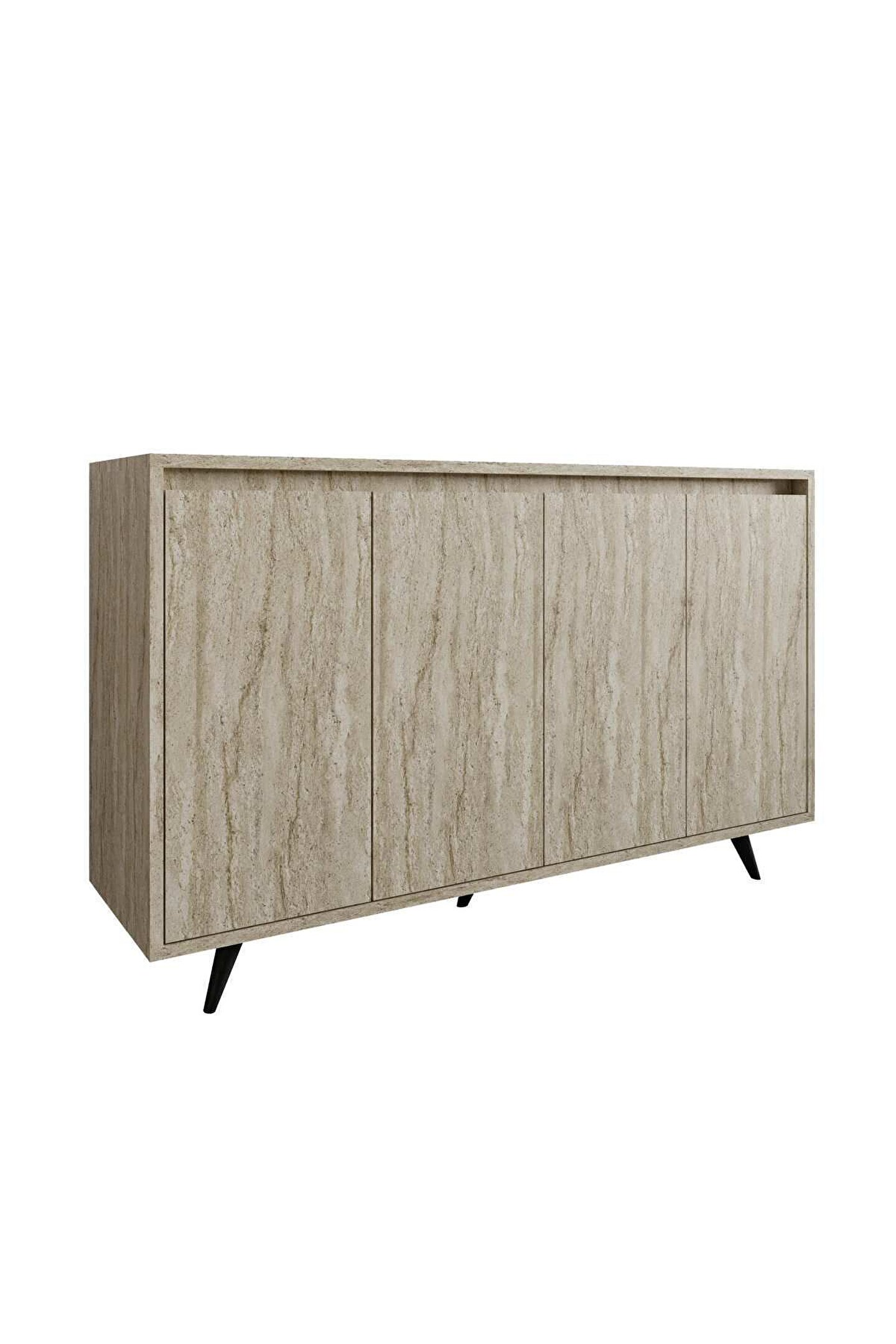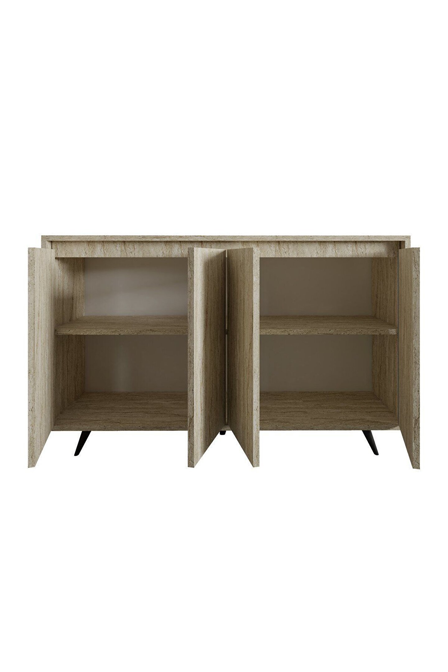 Ürün gövdesi 18 mm kalınlığında Traverten renginde suntalam malzeme kullanılarak üretilmiştir. Yaşam alanlarına modern desenleriyle şıklık kazandırırken, kapalı ve açık bölmeleri ile depolama ihtiyacınızı giderebilecek niteliktedir.