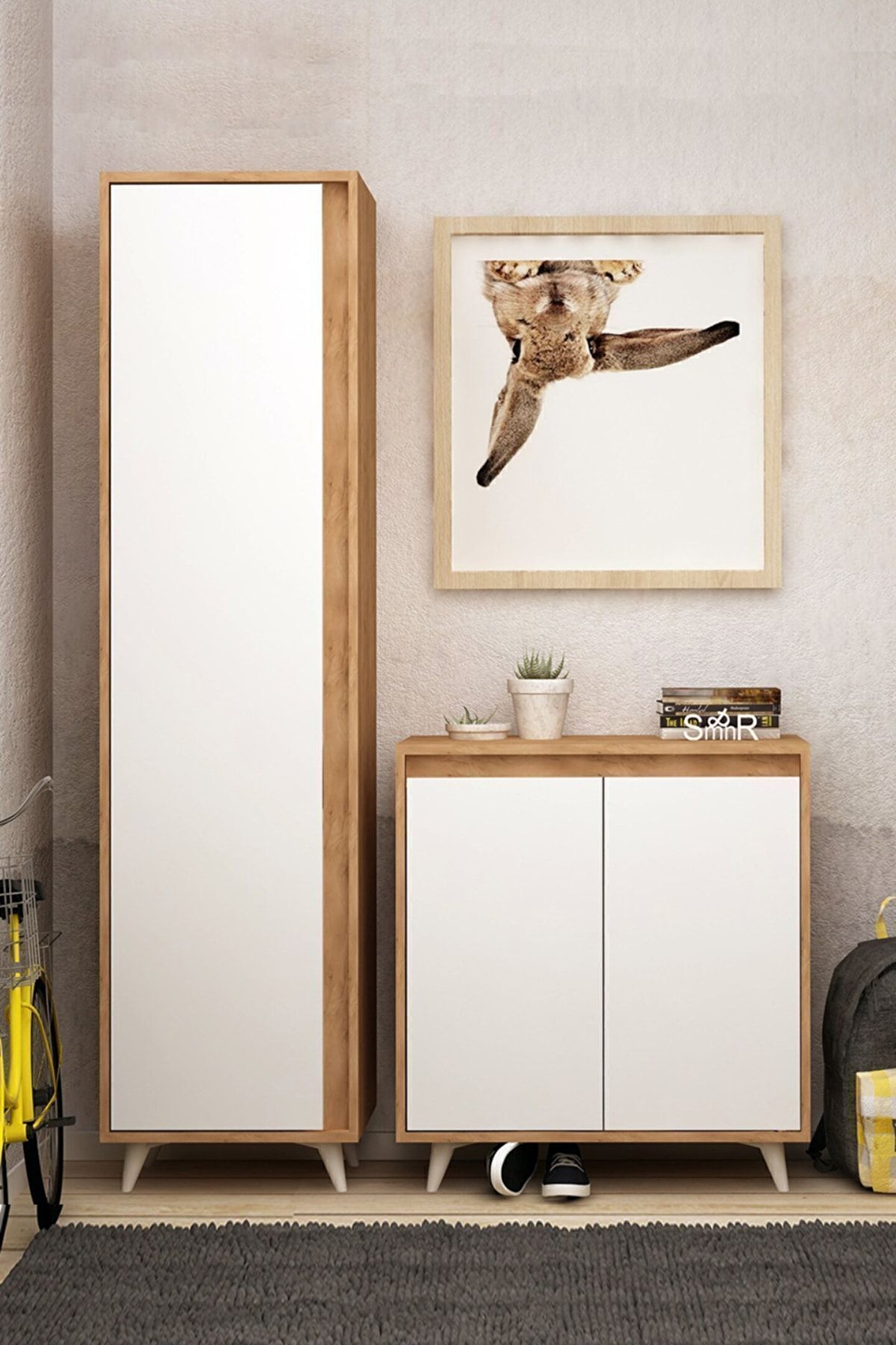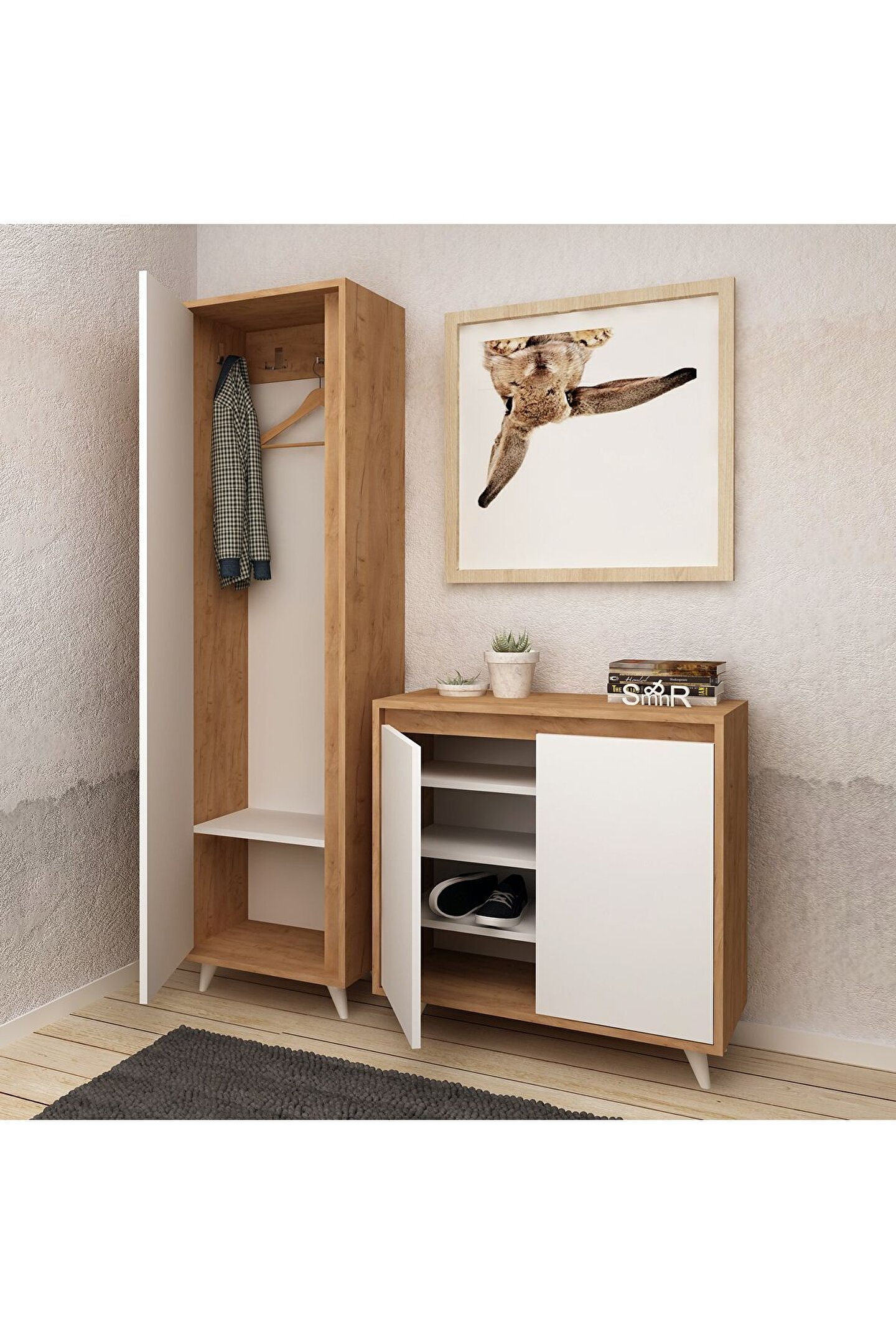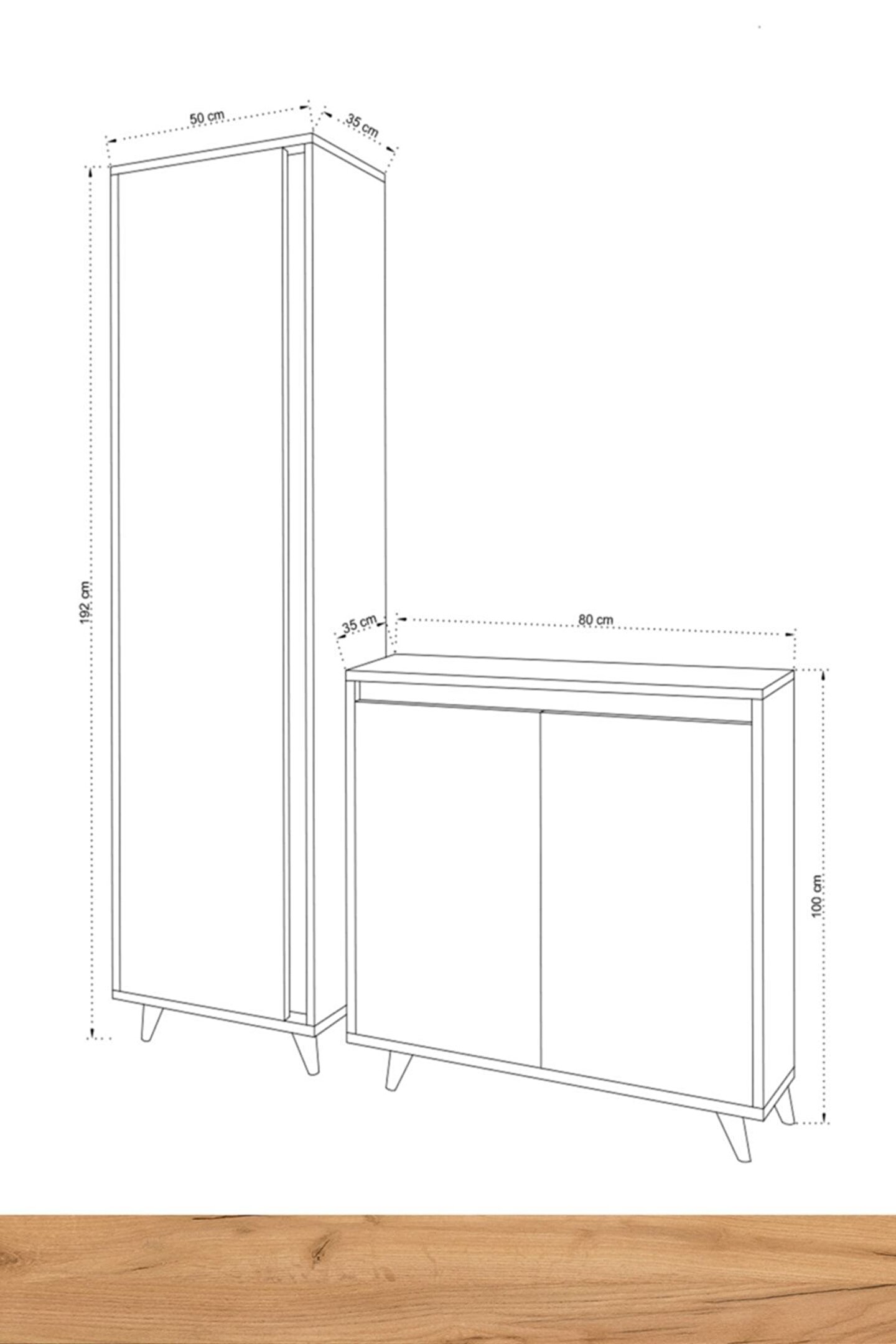 OMNİNDE VESTİYER Ürün Ölçüleri AYAKKABILIK MODÜLÜ G80 cm D35 cm Y100 cm ASKI MODÜLÜ G50 cm D35 cm Y192 cm Malzemeler GÖVDE: GOLD OAK(ALTIN MEŞE) SUNTALAM KAPAK: BEYAZ SUNTALAM Renk ALTIN MEŞE-BEYAZ Ürün Özellikleri Kullanılan Tüm Malzemeler TSE onaylı, E1 Kalitesinde olup kanserojen madde içermez ve Anti Bakteriyeldir. ; Montajı kolaylaştıracak biçimde kurulum talimatı yer almaktadır. ; Ürün yüzeyinde bulunan ahşap doku, doğal ağacı aratmayacak görünümdedir. ; Antre ve hollerde derleyici bir öge olarak kullanılmaya uygundur.;