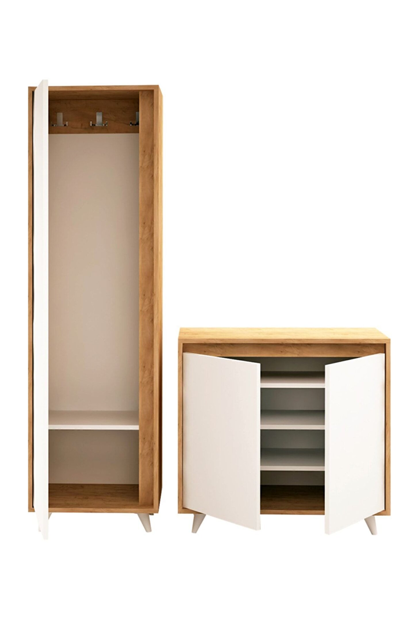 OMNİNDE VESTİYER Ürün Ölçüleri AYAKKABILIK MODÜLÜ G80 cm D35 cm Y100 cm ASKI MODÜLÜ G50 cm D35 cm Y192 cm Malzemeler GÖVDE: GOLD OAK(ALTIN MEŞE) SUNTALAM KAPAK: BEYAZ SUNTALAM Renk ALTIN MEŞE-BEYAZ Ürün Özellikleri Kullanılan Tüm Malzemeler TSE onaylı, E1 Kalitesinde olup kanserojen madde içermez ve Anti Bakteriyeldir. ; Montajı kolaylaştıracak biçimde kurulum talimatı yer almaktadır. ; Ürün yüzeyinde bulunan ahşap doku, doğal ağacı aratmayacak görünümdedir. ; Antre ve hollerde derleyici bir öge olarak kullanılmaya uygundur.;