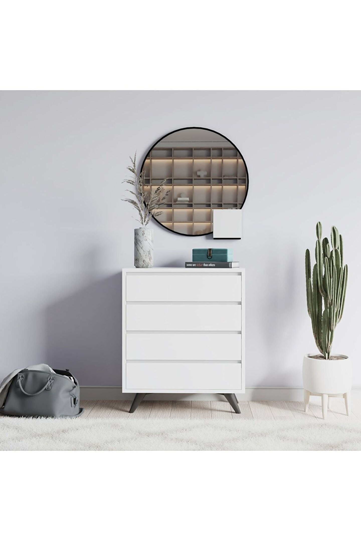 2 yıl veya 5 yıl garanti süresi ile uzun vadeli kullanım güvencesi sunar; Dört geniş çekmece, kıyafetlerinizi ve kişisel eşyalarınızı düzenli bir şekilde saklamanız için idealdir; Suntalam ve suntalam materyali sayesinde dayanıklı ve uzun ömürlü bir yapıya sahiptir;