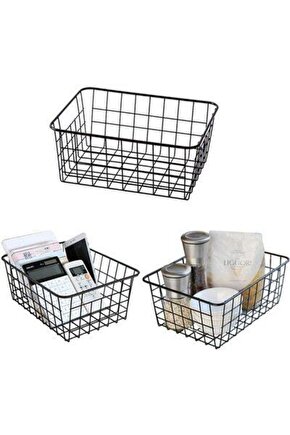 PAKET İÇERİĞİ: 2 ADET; Metal Ferforja Sepet, Masa Üstü Organizer, Organizer Sepet, Düzenleyici Organizer, Dolap İçi Organizer, Tel Metal sepetimiz ile sık kullanılan eşyaları sepette düzenlip kolayca erişebilir ve dağınıklığı toparlayabilirsiniz. Mutfak dolapları, kiler, banyo, tezgâh üstü ve atölyelerinizde ürünümüzü kullanabilirsiniz. Ürünümüz metal telden imal edildiği için sepettinizdeki her şeyi görmenizi sağlar. Çocuklarınızın oyuncaklarını, evcil hayvan malzemelerini, kiler malzemelerini, misafir banyo malzemelerini, temizlik malzemelerini, ve çok daha fazlasını düzenleyebilirsiniz.; Ürün Ölçüleri: Genişlik : 28,5 Cm x 22 Cm Yükseklik : 12 cm;