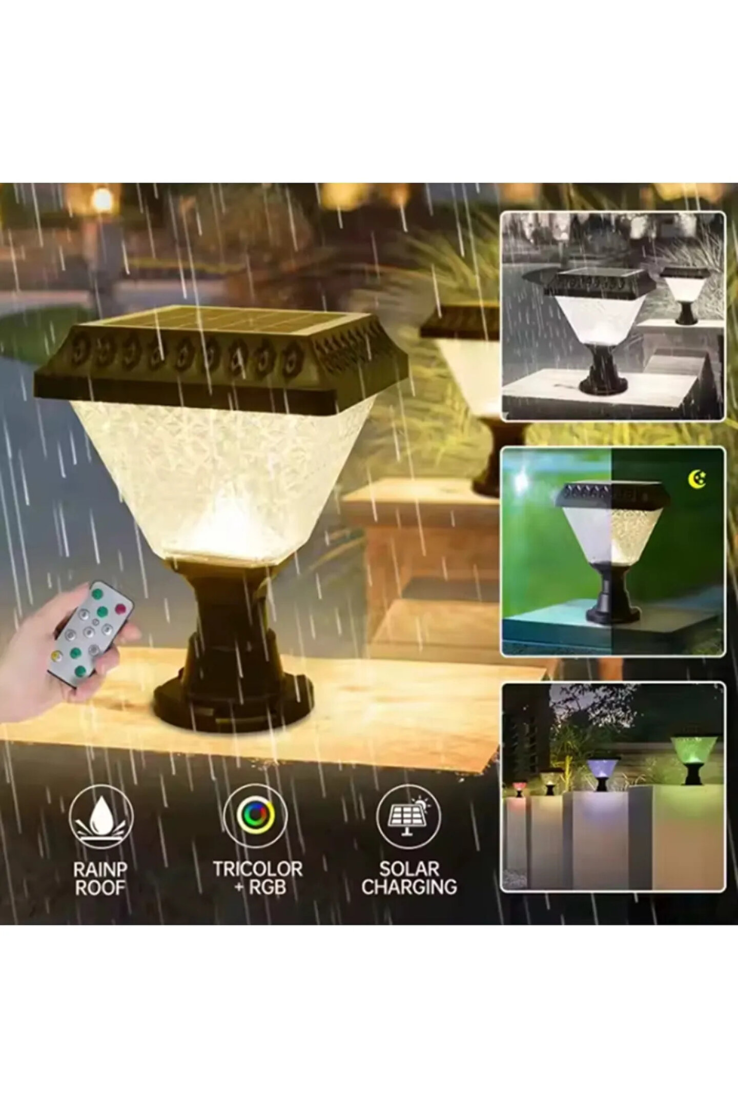 2 Adet Güneş Enerjili, Kumandalı, RGB, Gün Işığı, Mavi, Kırmızı Işıklı GECE Sensörlü Bahçe Apliği