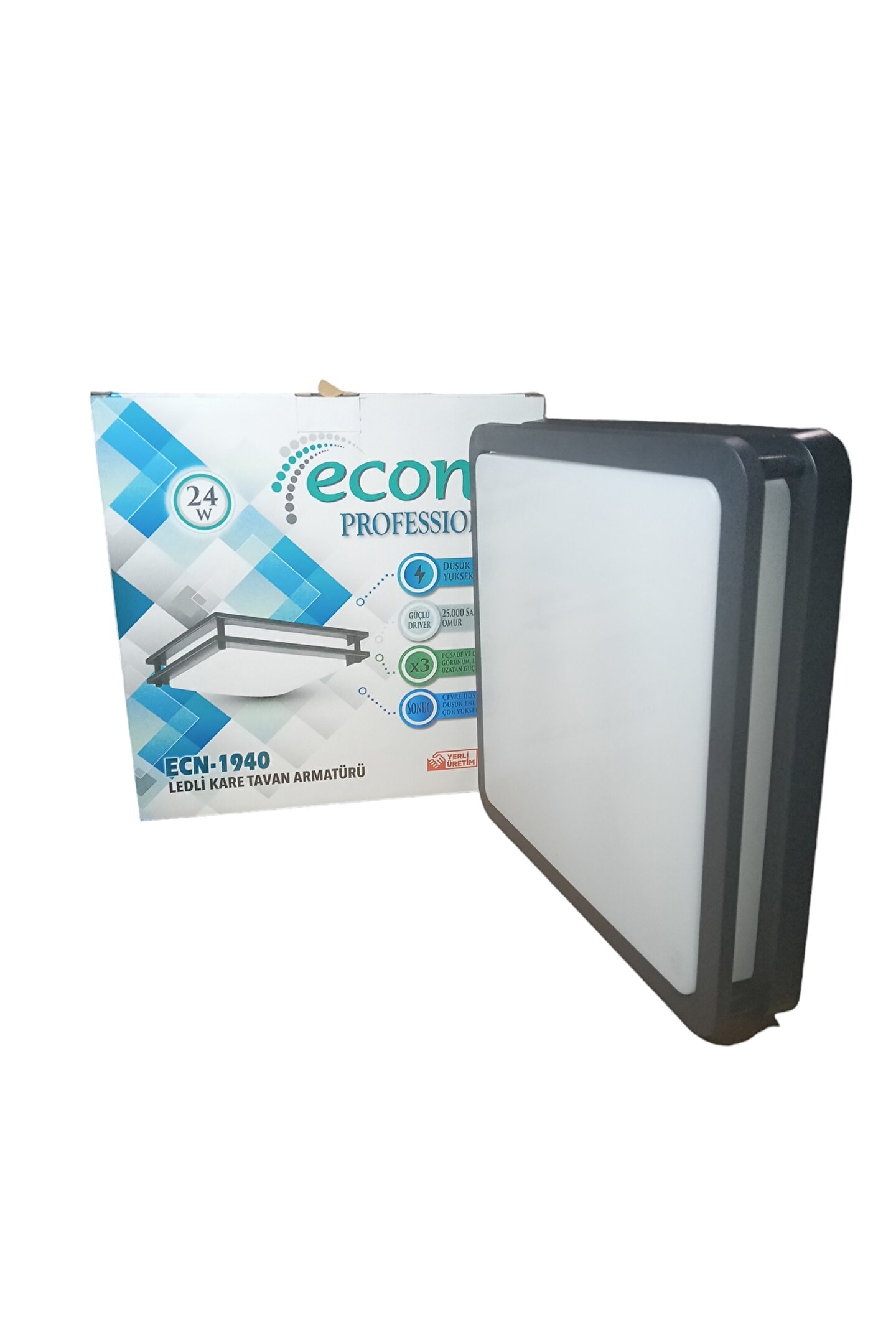 Ürünümüz elektrik kaynağına bağlanarak çalışır. ; Direk 220, ekstra trafo vs istemez. ; IP54 Koruma sınıfındandır. ; İç mekan, dış mekanda ise saçak altı, balkon, teras içi gibi alanlarda kullanılabilir. ; Ofis, işletme, mağaza gibi yerlerde yeni nesil şık tasarımı ile tercih edilen ürünümüz 24 Watt, 6500 Kelvin, Beyaz Işık led üründür. ; Hiç kapatmadan 25000 saate kadar led ömrü vardır. ; Birinci kalite ABS plastik gövde. ; Ürün Ölçüleri: 27 x 27 Cm, Derinlik 4,8 Cm. ; Kargo esnasında ürüne zarar verdiği için paket içeriğine vida - dubel koymuyoruz. ; Ürün tavanın yanı sıra duvarda da kullanıma uygundur.;