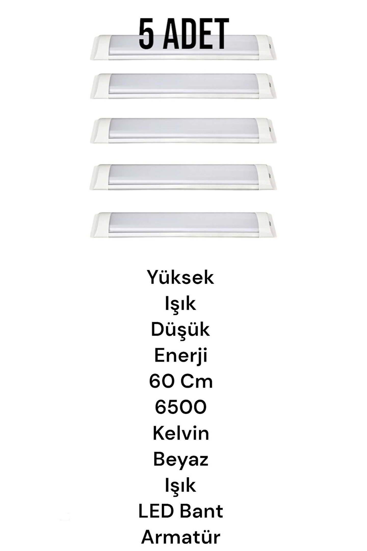 5 Adet 60 Cm, Ultra Kaliteli, Beyaz Işık 18 Watt Led Bant Armatür İşletme Ev, Ofis, Fabrika Armatürü Ürünümüz piyasadaki yüksek ışık gücüne sahip gibi satılan düşük ışığa sahip ürünler ile kıyaslanamayacak kalitededir; Çok yüksek lümen değeri ile yüksek ışık gücüne sahip olmasına rağmen çok düşük enerji sarfiyatı vardır; 18 Watt, 6500 Kelvin, Beyaz Işık led bant armatürümüz tavan, duvar, dış mekanda saçak altı, balkon, banyo, işletme, ofis, ev, teras, kamelya, veranda, fabrika, atölye gibi alanlarda kullanıma uygundur; Ölçü: 60 Cm Işık Rengi: 6500 Kelvin Beyaz Işık Watt: 18 Watt Lümen Değeri: 1980 Lümen IP Koruması: IP40 Aydınlatma Açışı: 120; Led Ömrü: 25000 Saat Paket İçeriği: 5 Adet 5 Adet 60 Cm, Ultra Kaliteli, Beyaz Işık 18 Watt Led Bant Armatür İşletme Ev, Ofis, Fabrika Armatürü;
