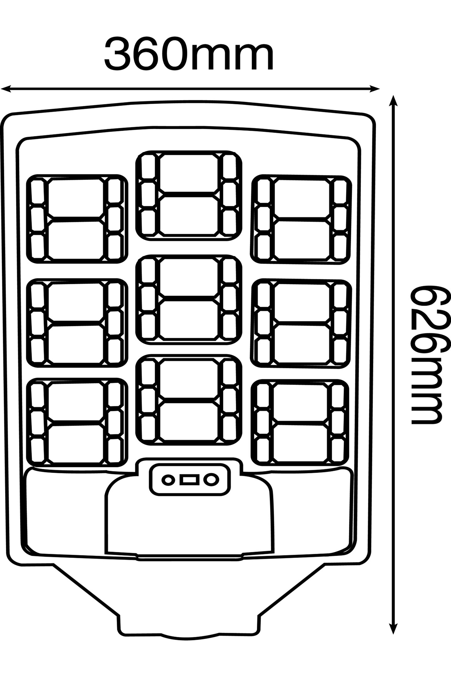 • Boyutlar: 360 mm genişlik ve 826 mm boy uzunluğu ile büyük alanları aydınlatan ideal ölçüler.